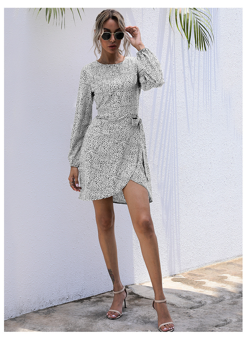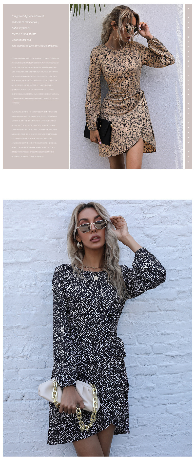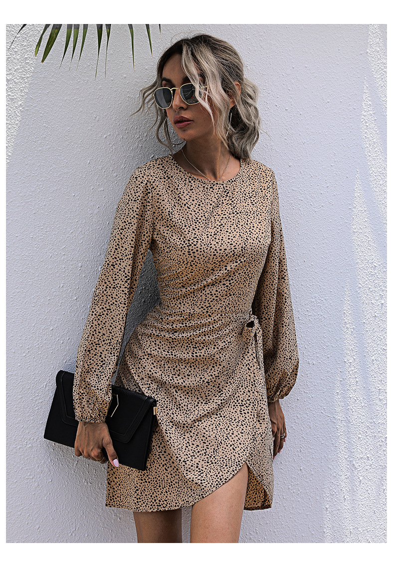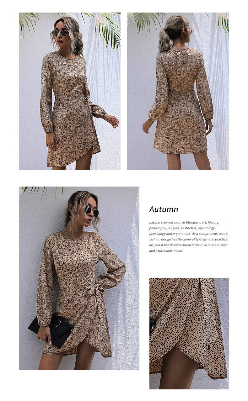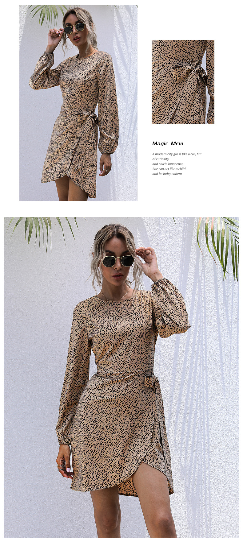 2021 Autumn Long Sleeve Leopard Print round Neck Tied Irregular Dress Women