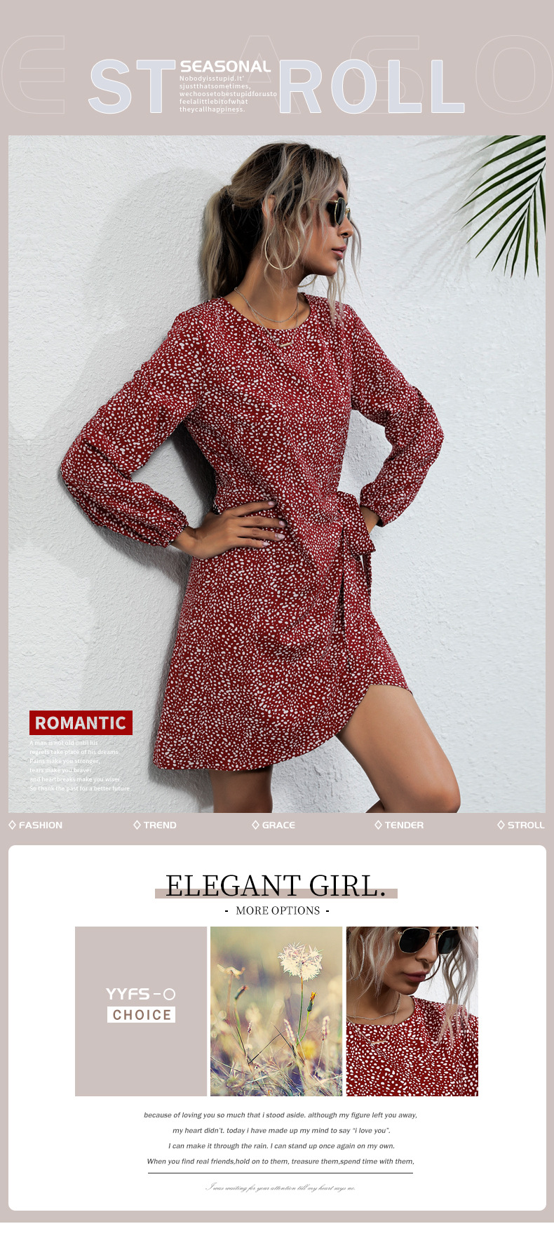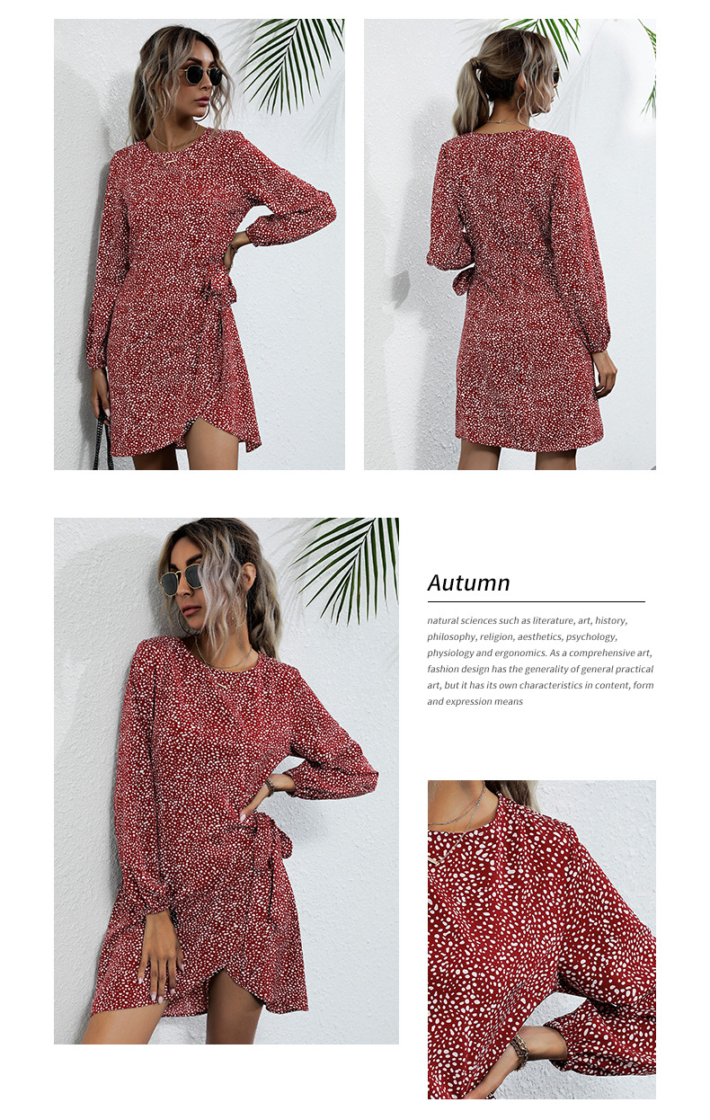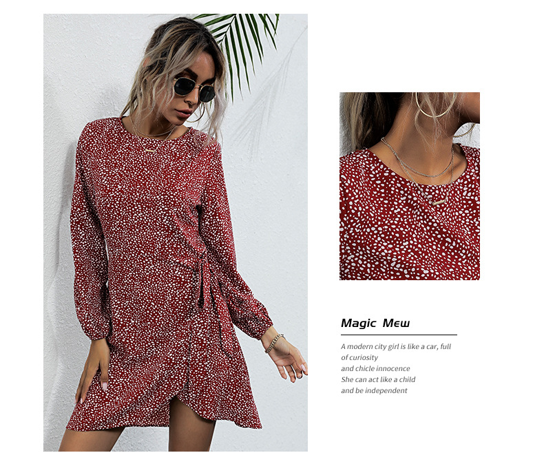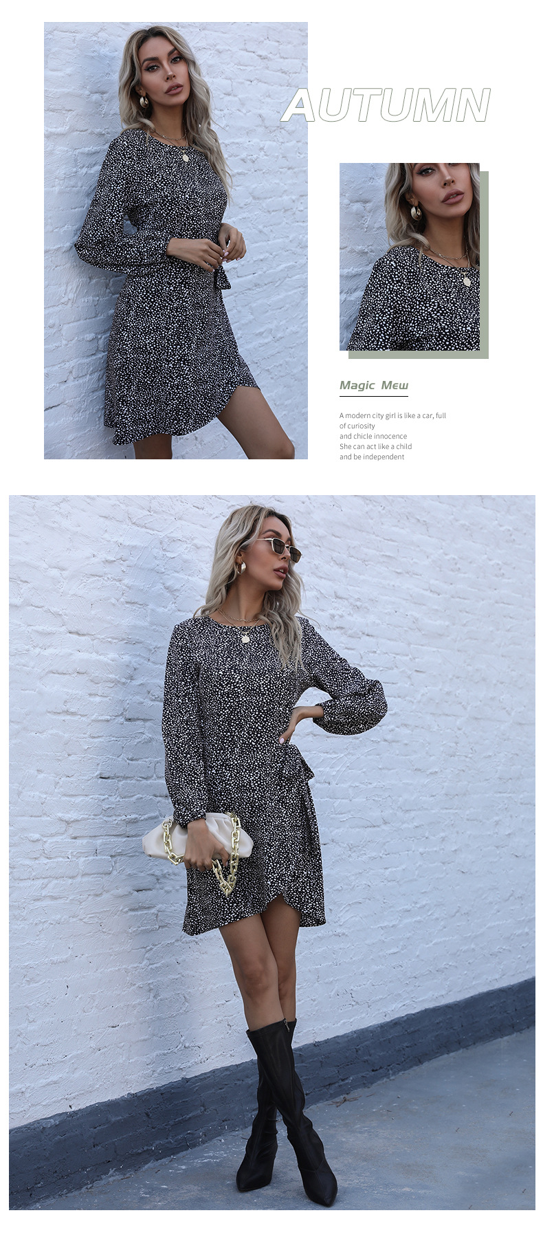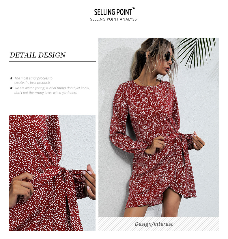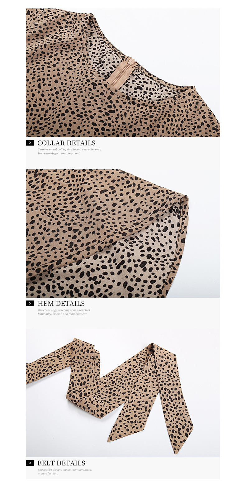 2021 Autumn Long Sleeve Leopard Print round Neck Tied Irregular Dress Women