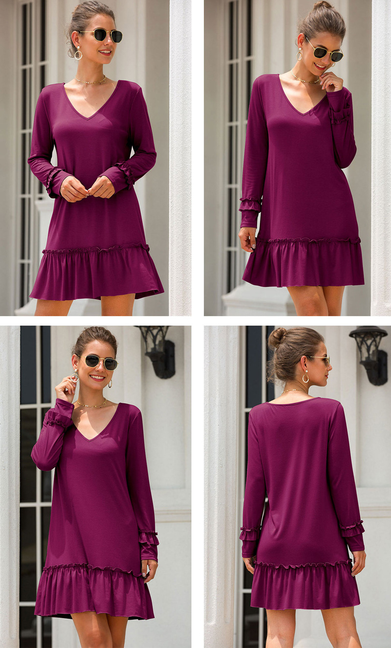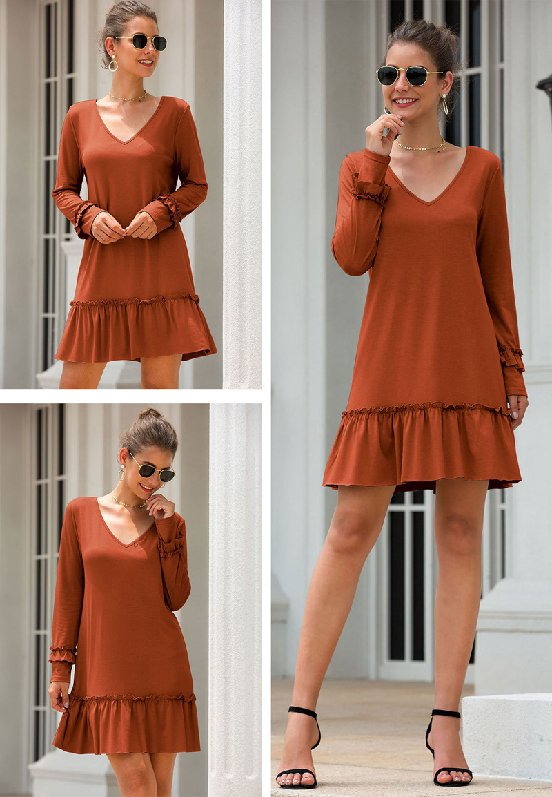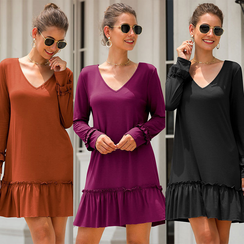 2021 Autumn Women Clothing New Arrival Wishheaby V-neck Flounce Stitching Dress