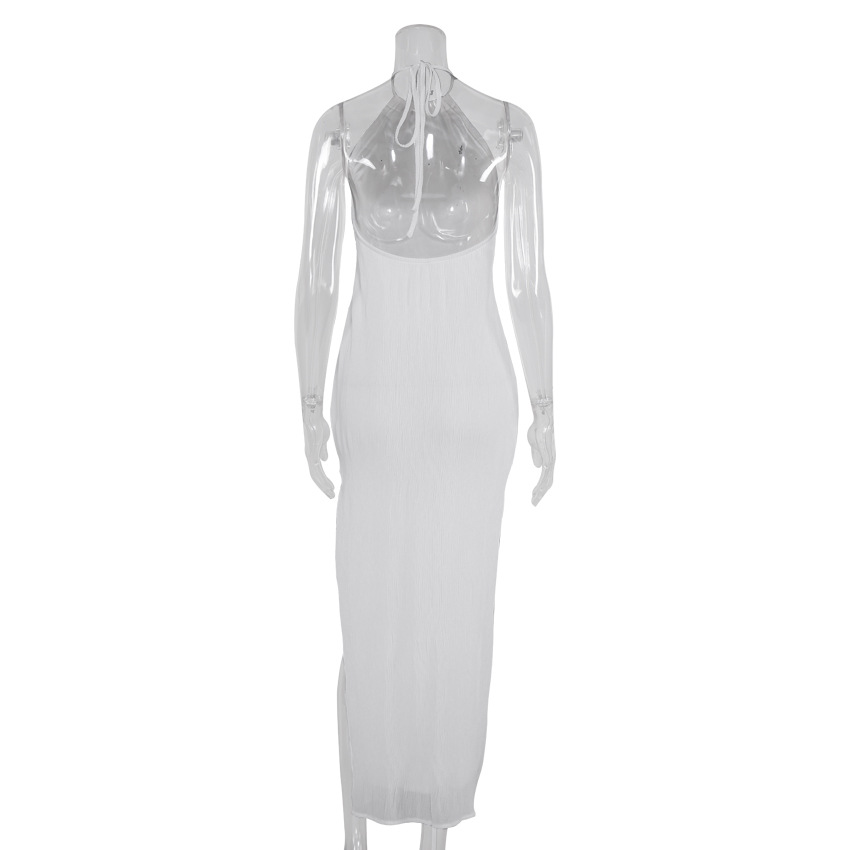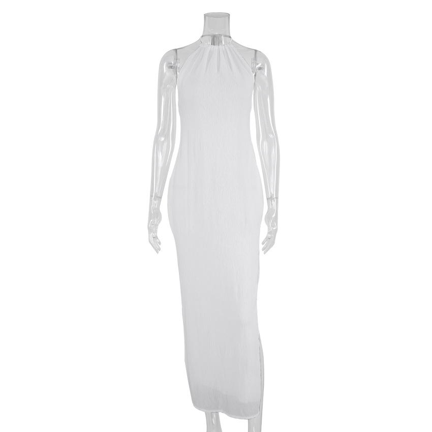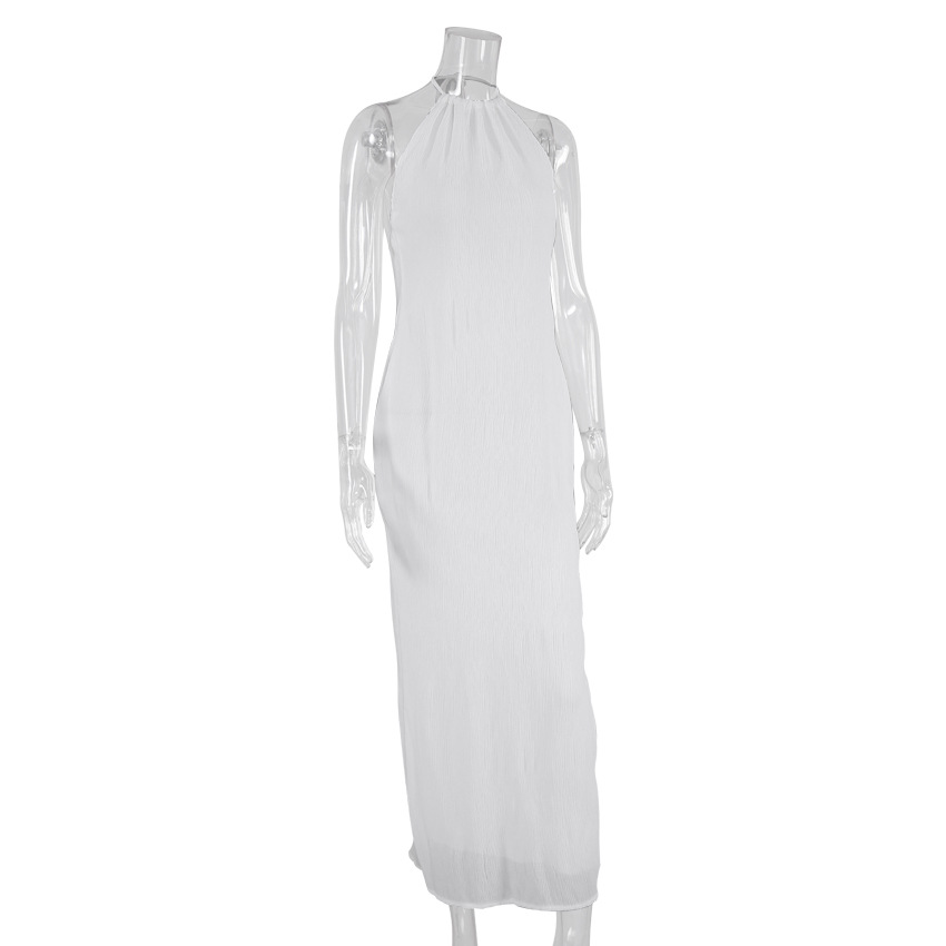 2021 Summer New Halter Sleeveless Chiffon Strap Dress Women Dress Backless Slit Fashionable Long Dress