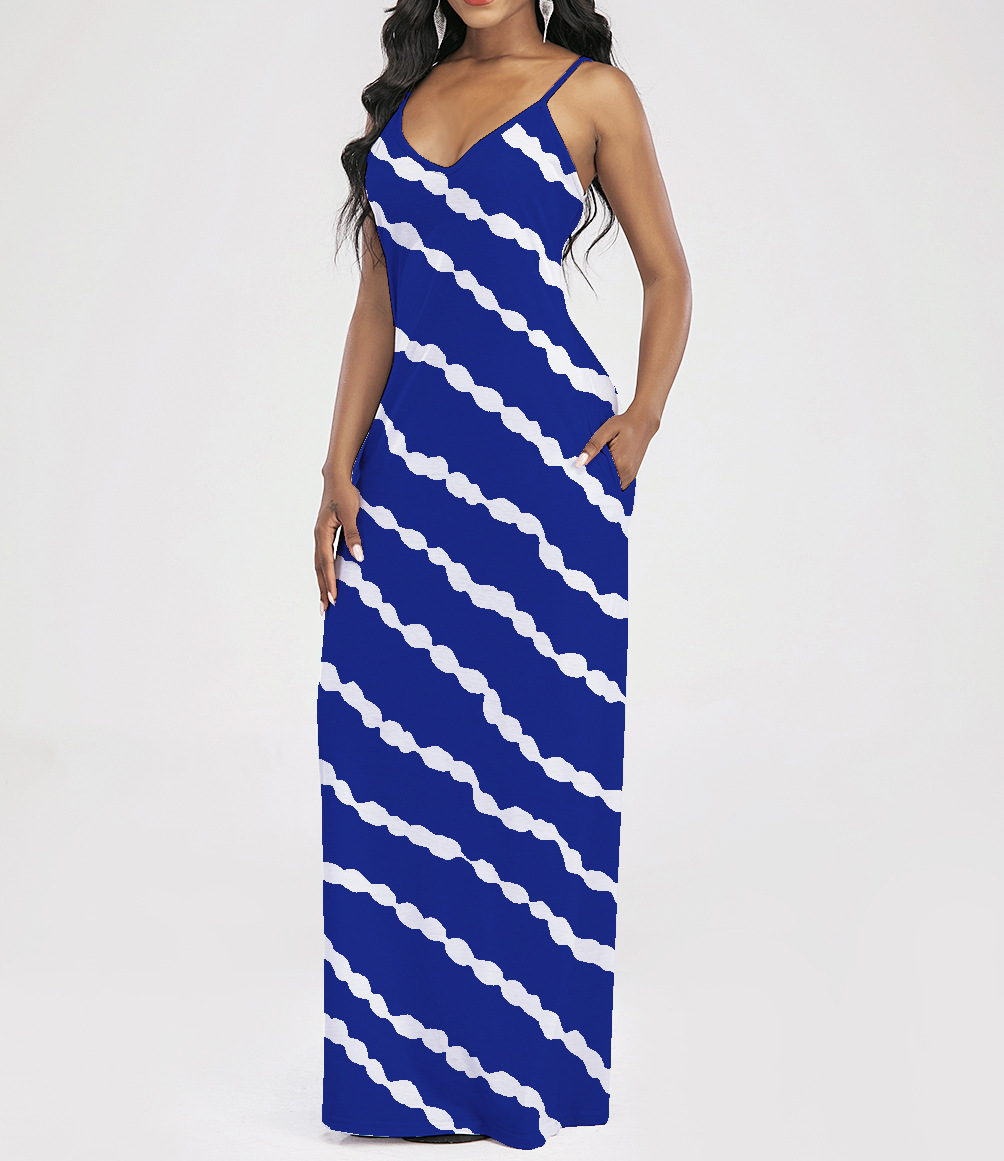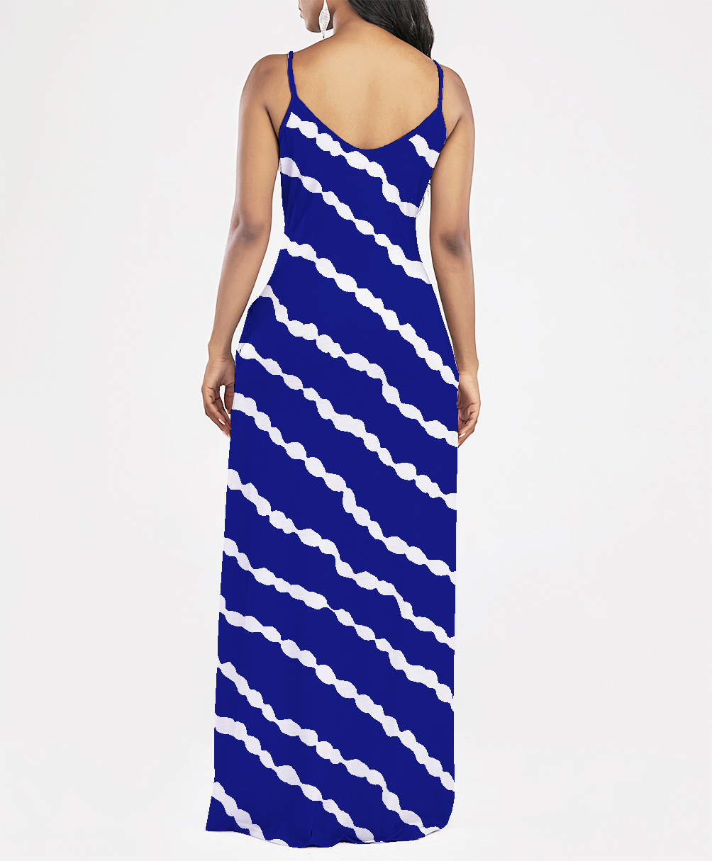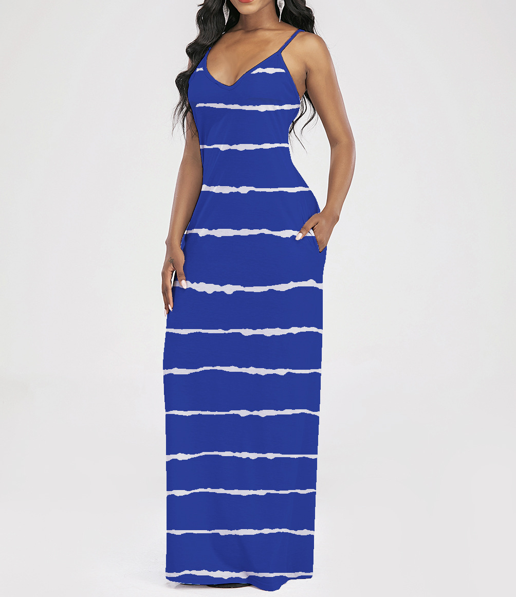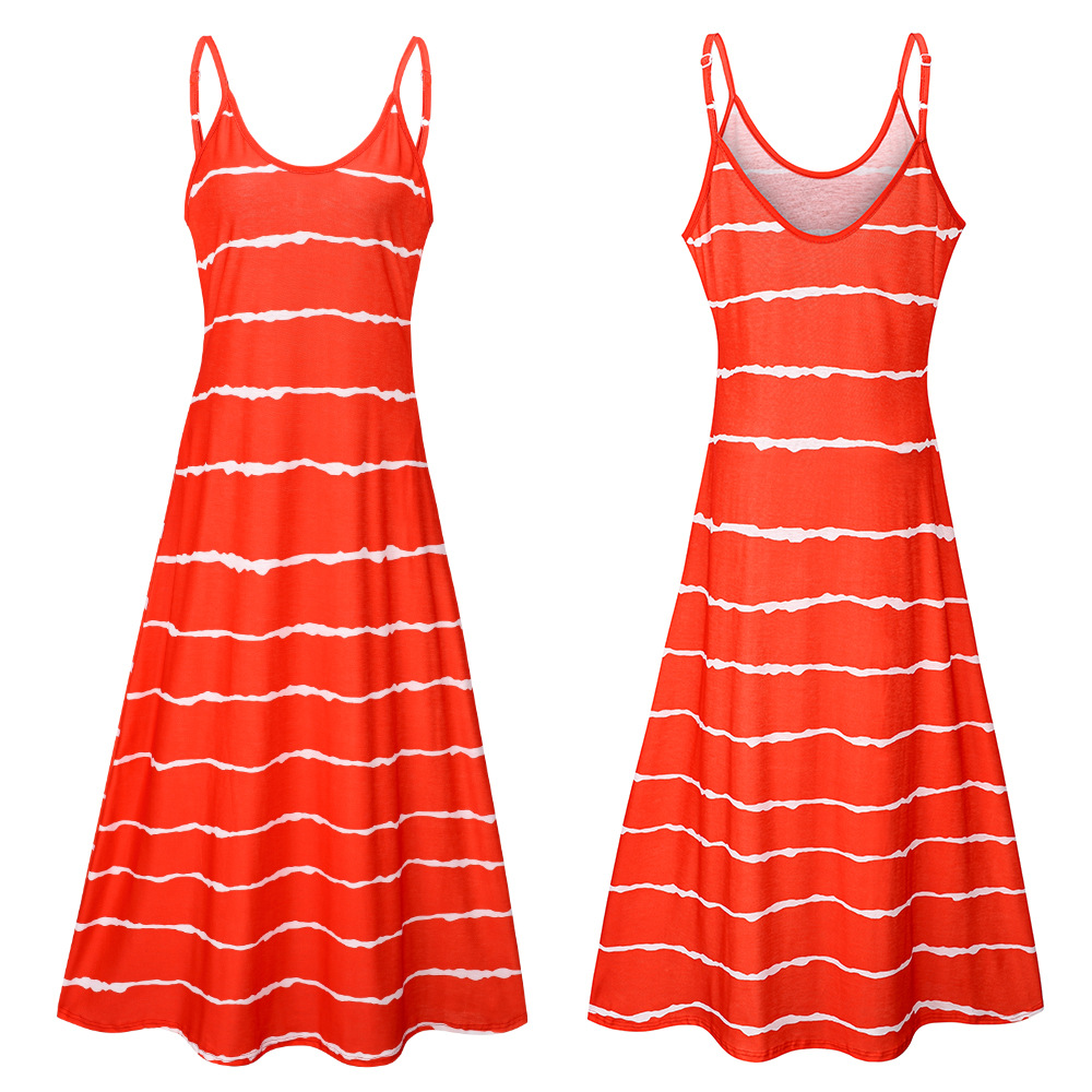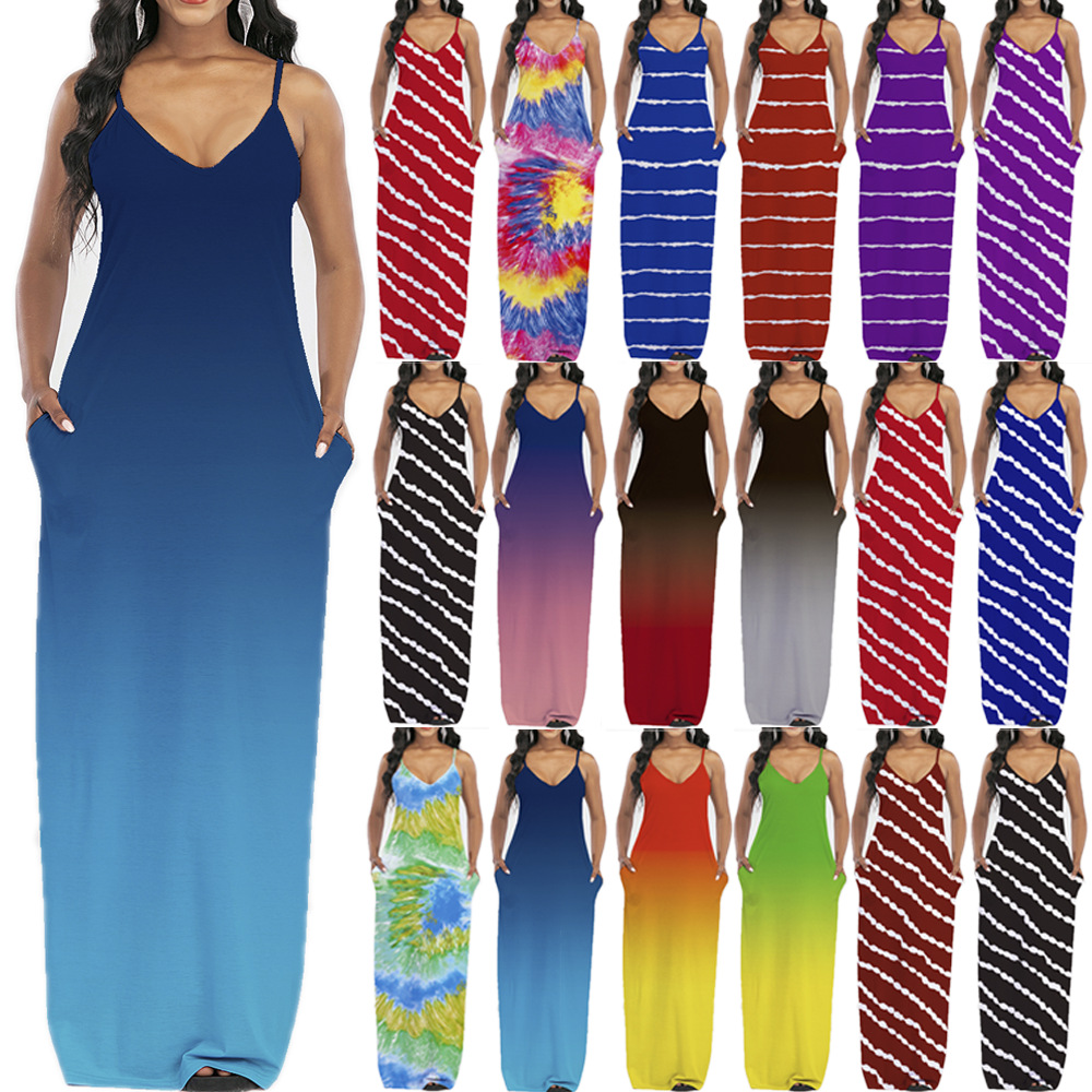 2021 Women Clothing Women Tie-Dye Gradient Slanted Stripe Printed V-neck Strap Dress