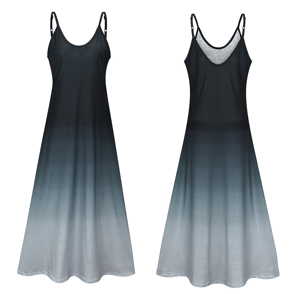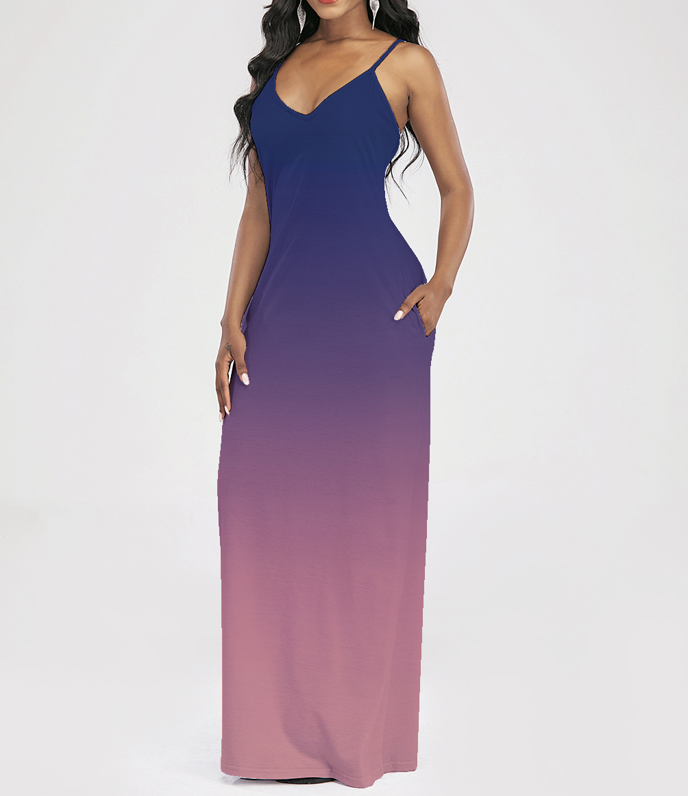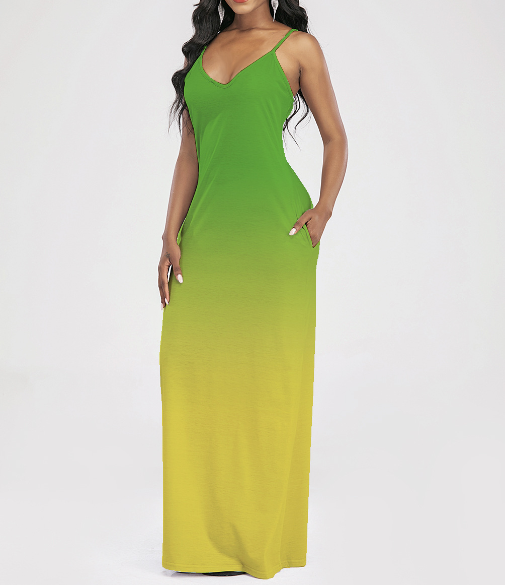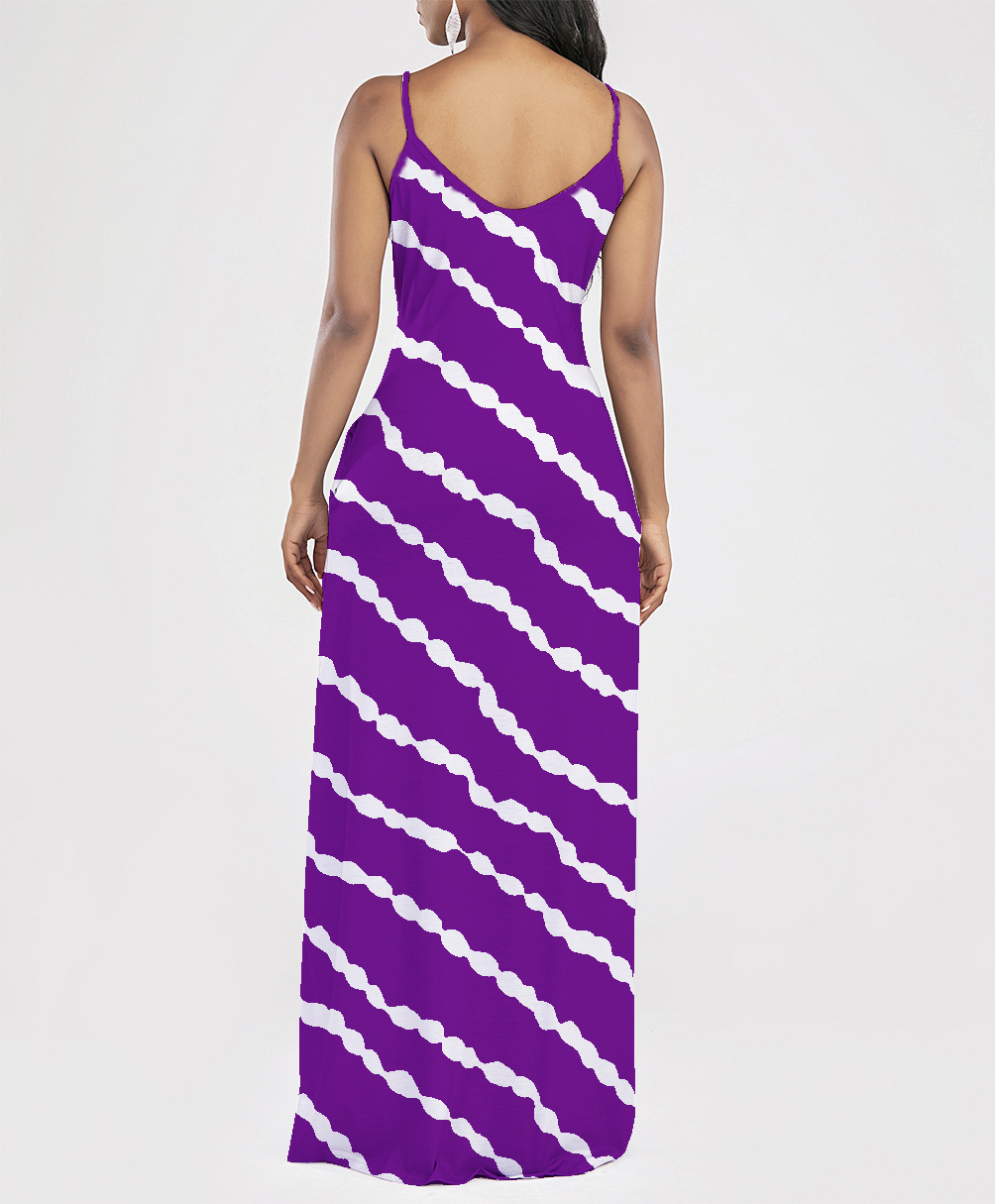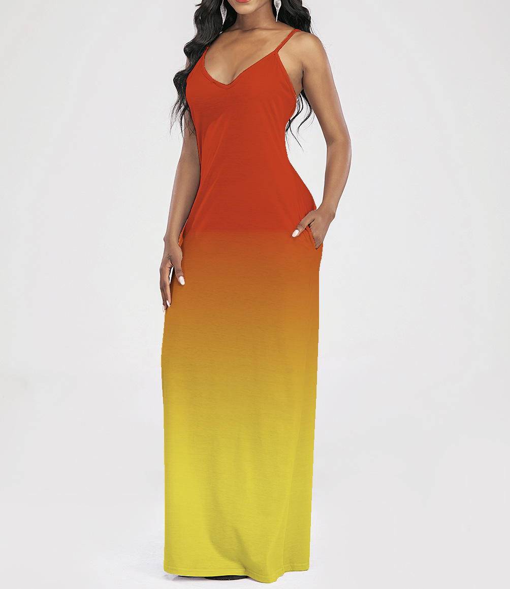 2021 Women Clothing Women Tie-Dye Gradient Slanted Stripe Printed V-neck Strap Dress