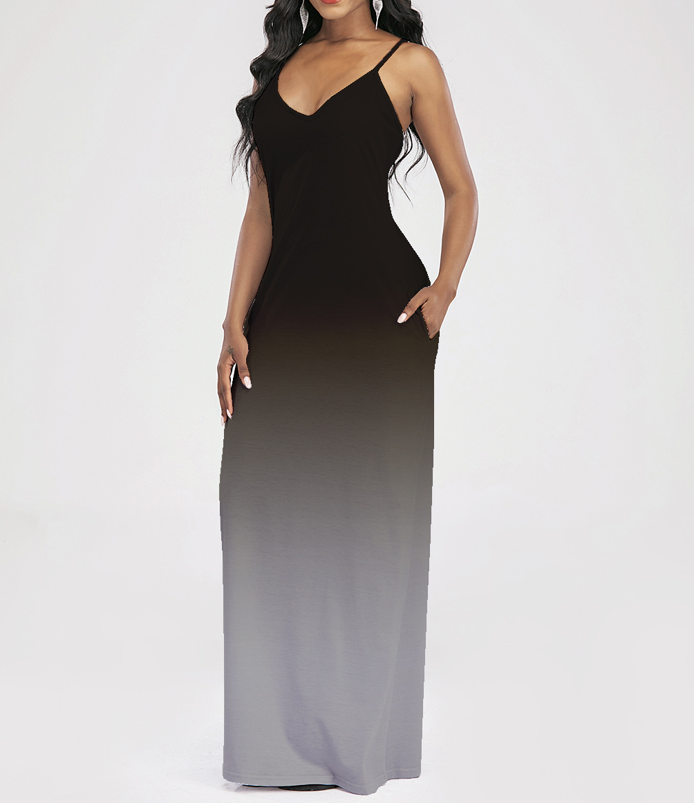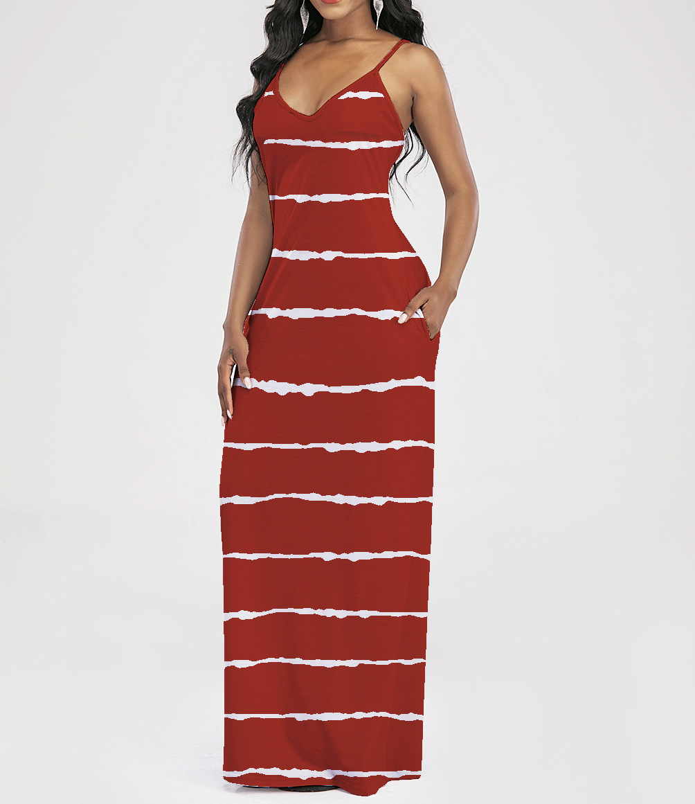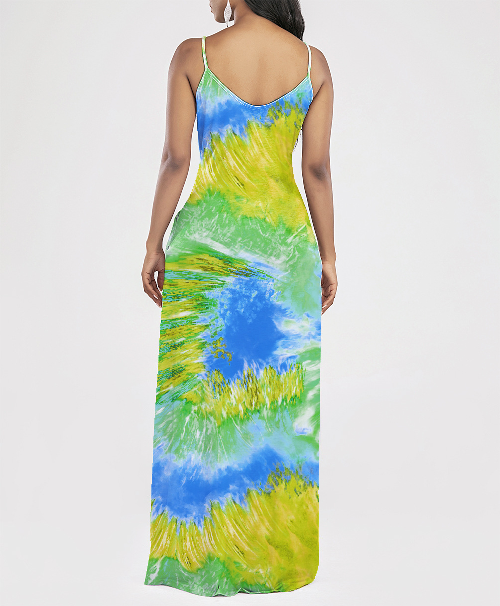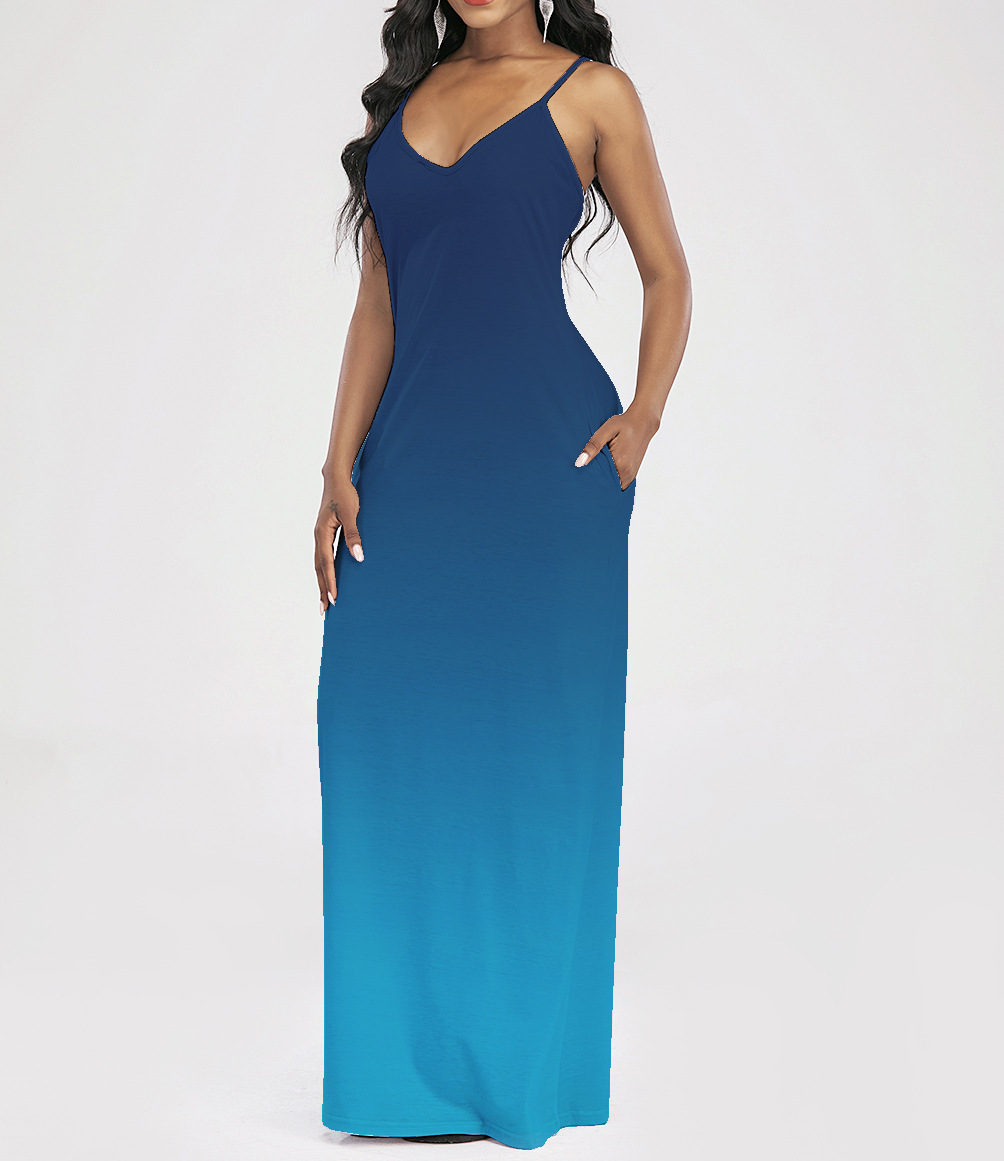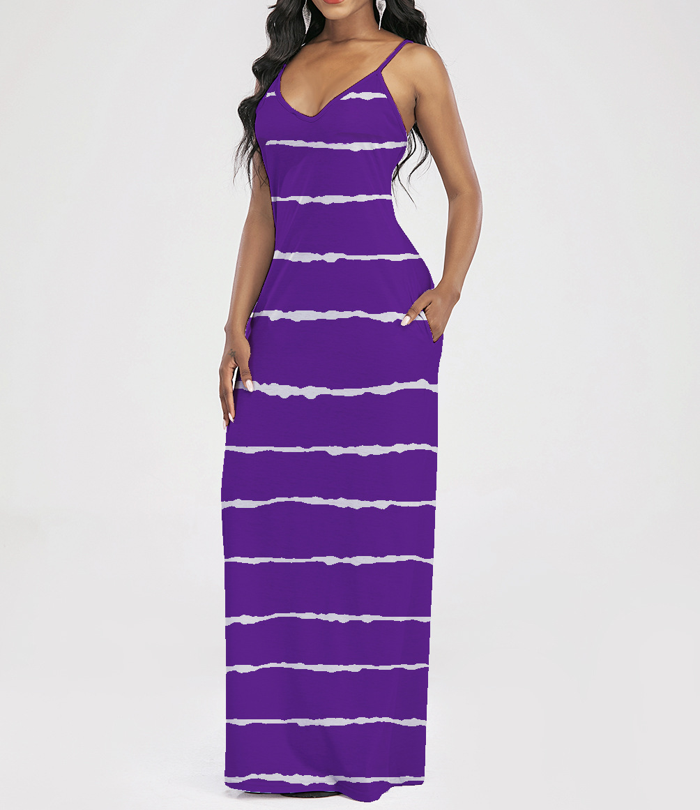 2021 Women Clothing Women Tie-Dye Gradient Slanted Stripe Printed V-neck Strap Dress
