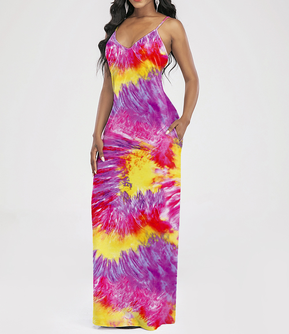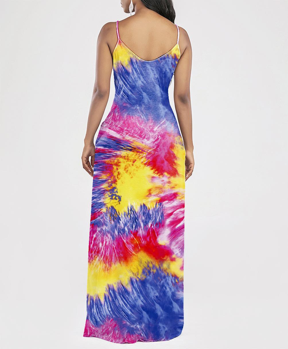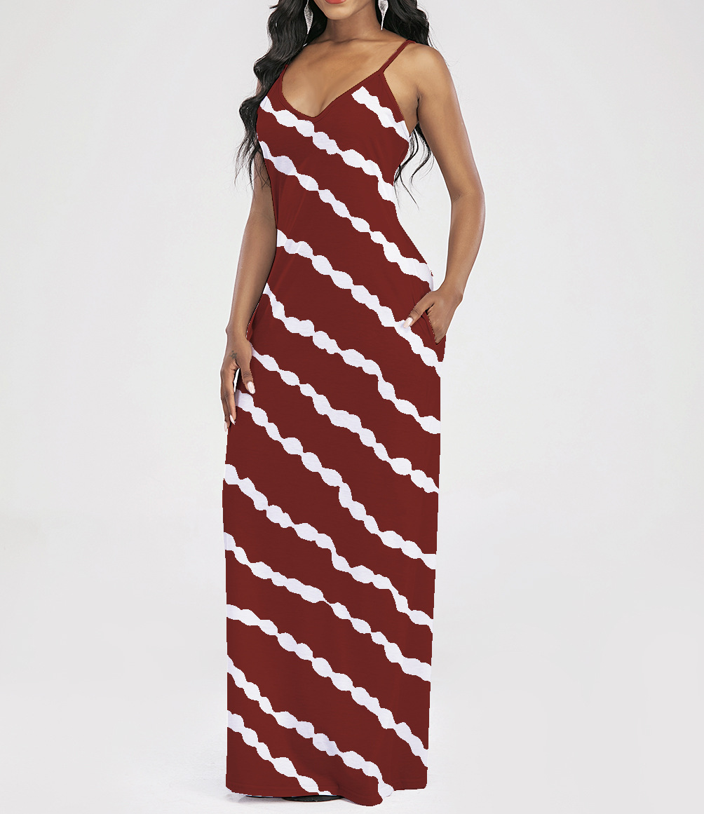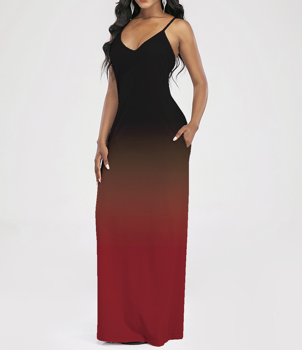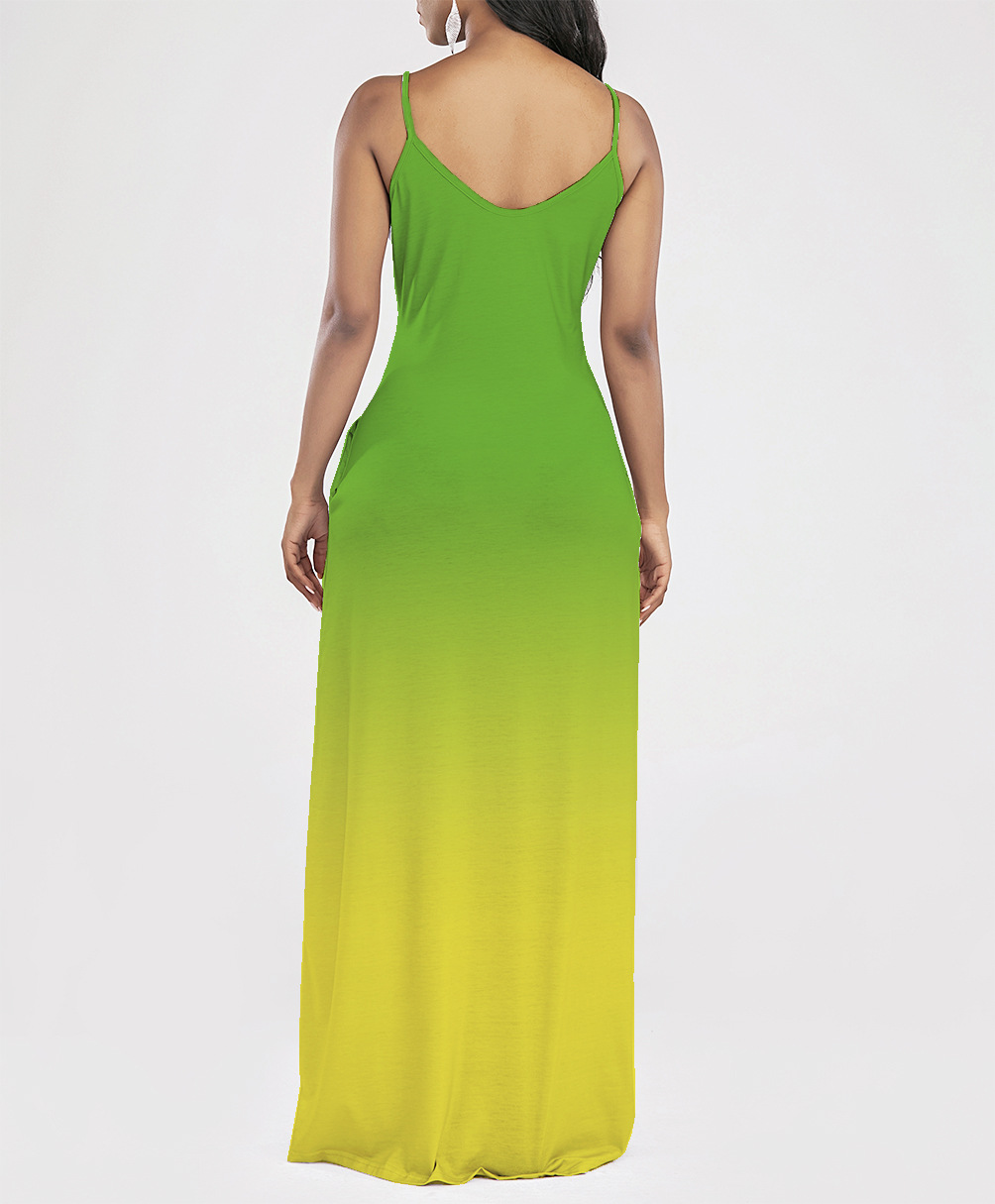 2021 Women Clothing Women Tie-Dye Gradient Slanted Stripe Printed V-neck Strap Dress