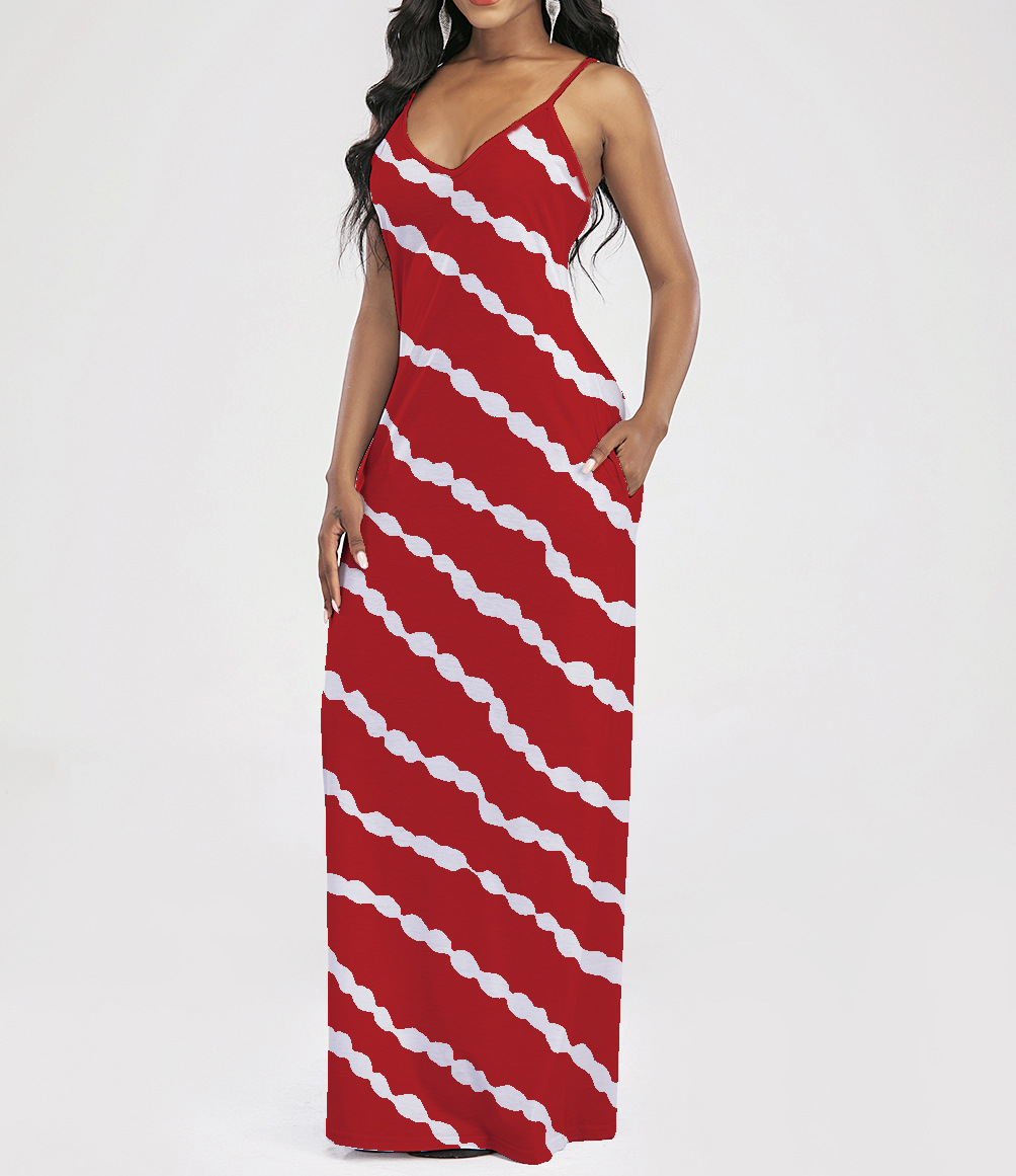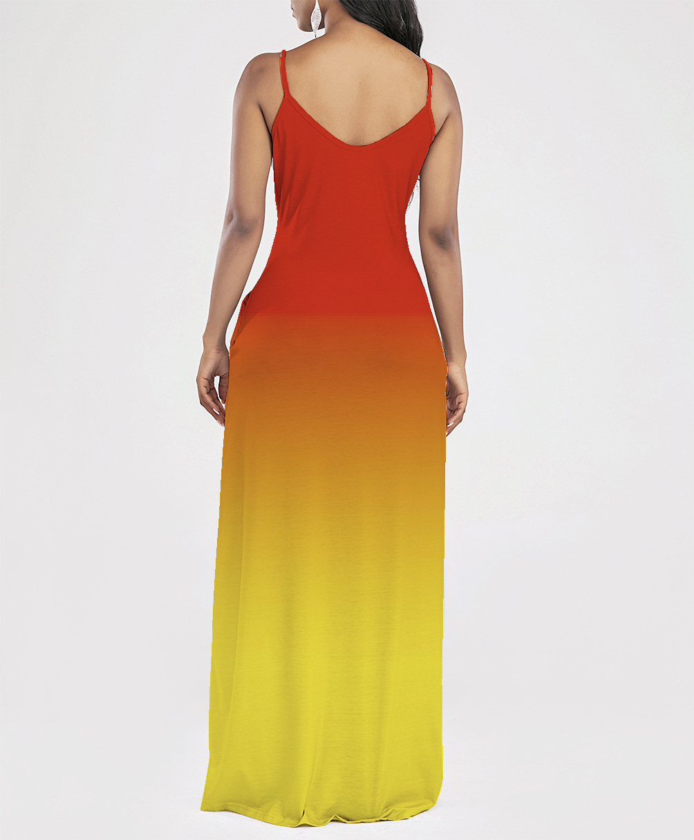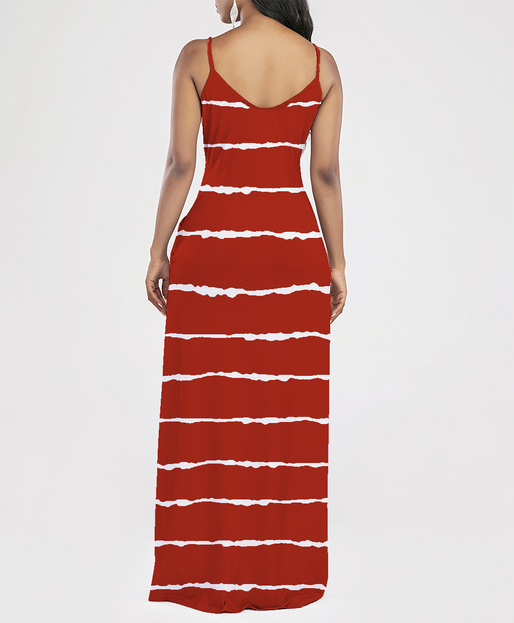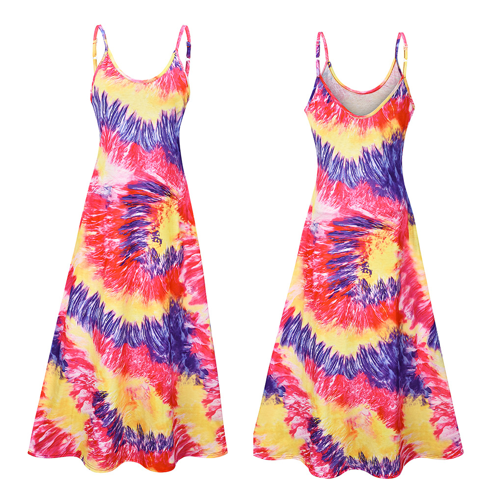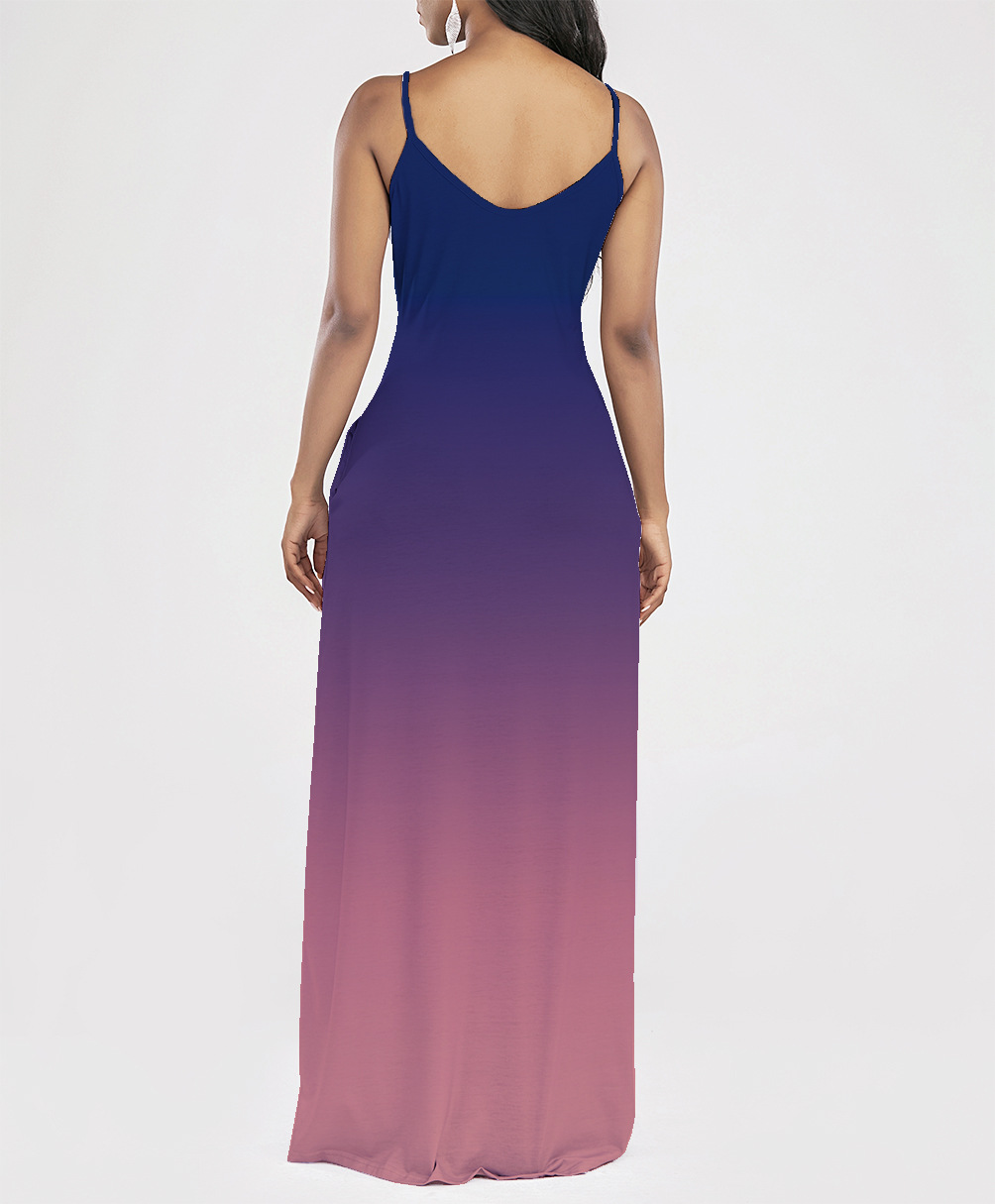 2021 Women Clothing Women Tie-Dye Gradient Slanted Stripe Printed V-neck Strap Dress