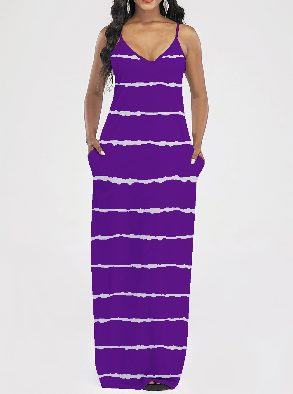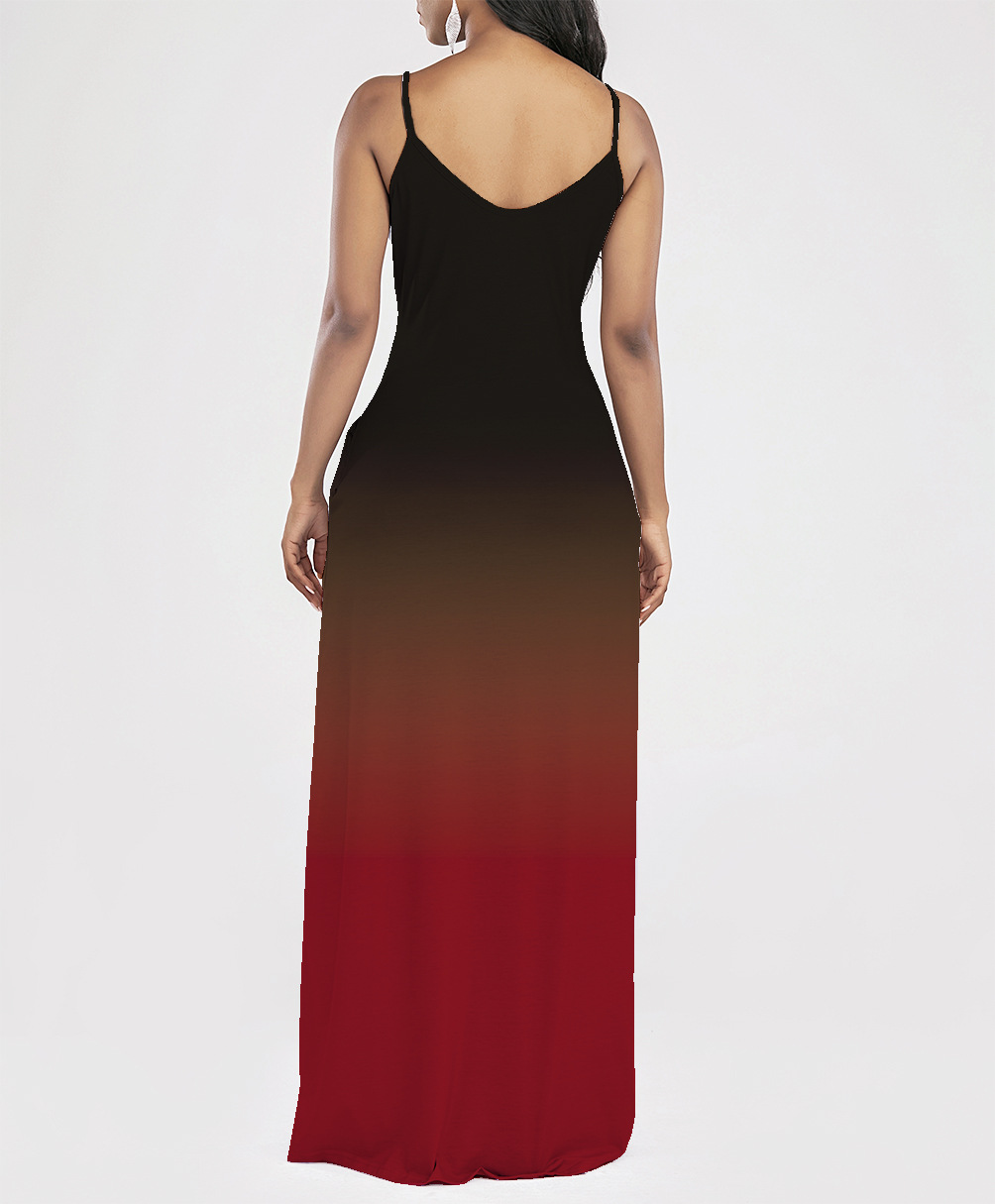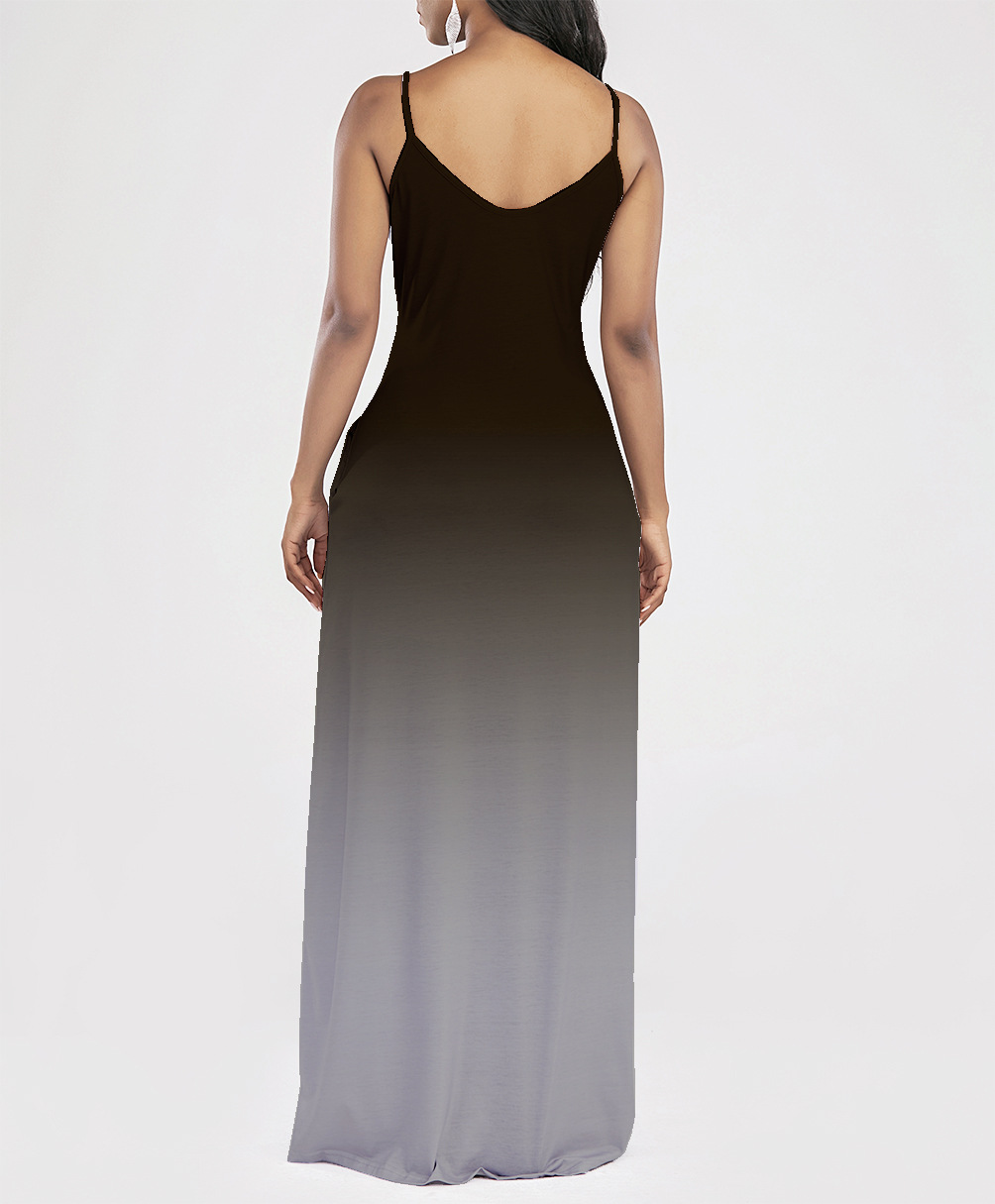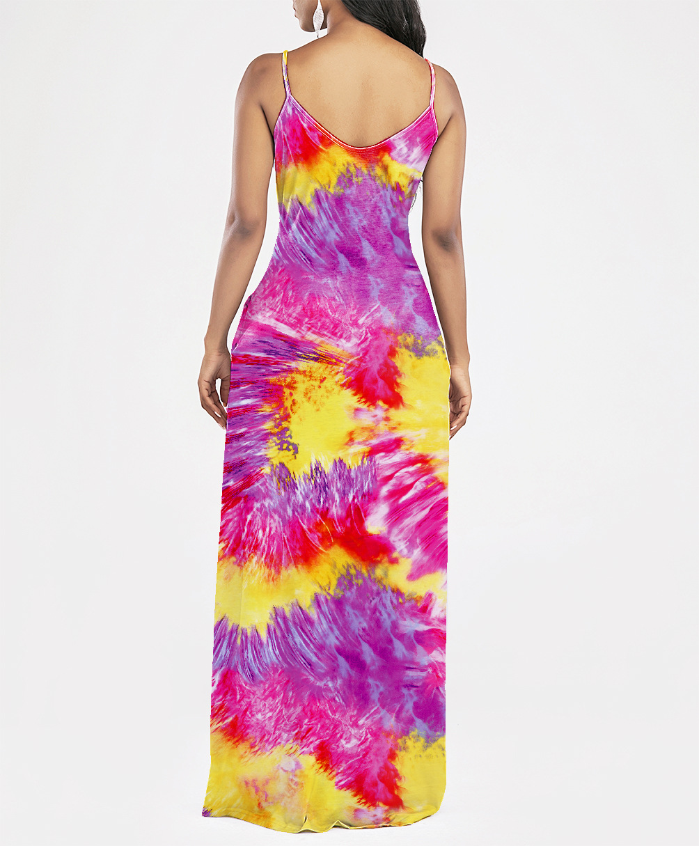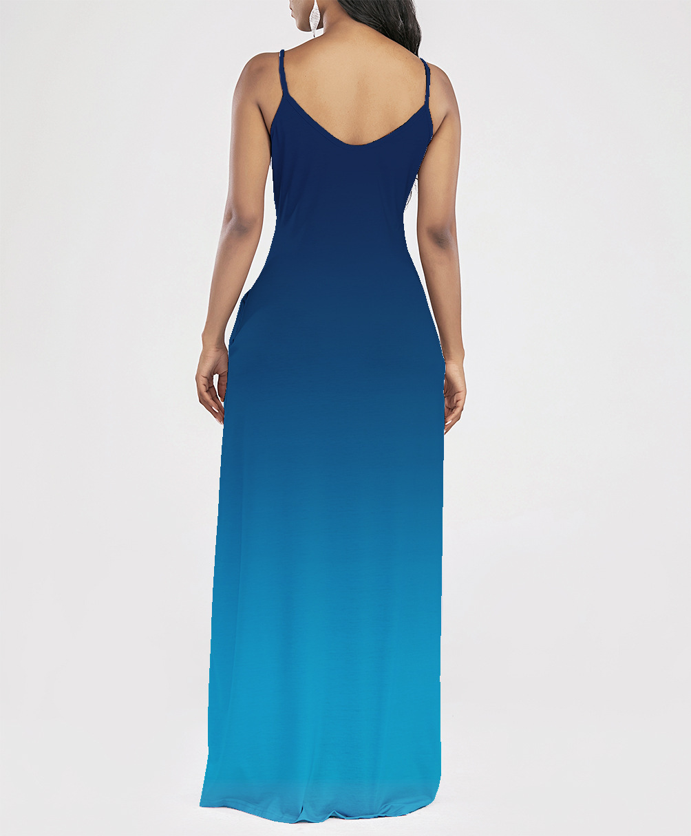 2021 Women Clothing Women Tie-Dye Gradient Slanted Stripe Printed V-neck Strap Dress