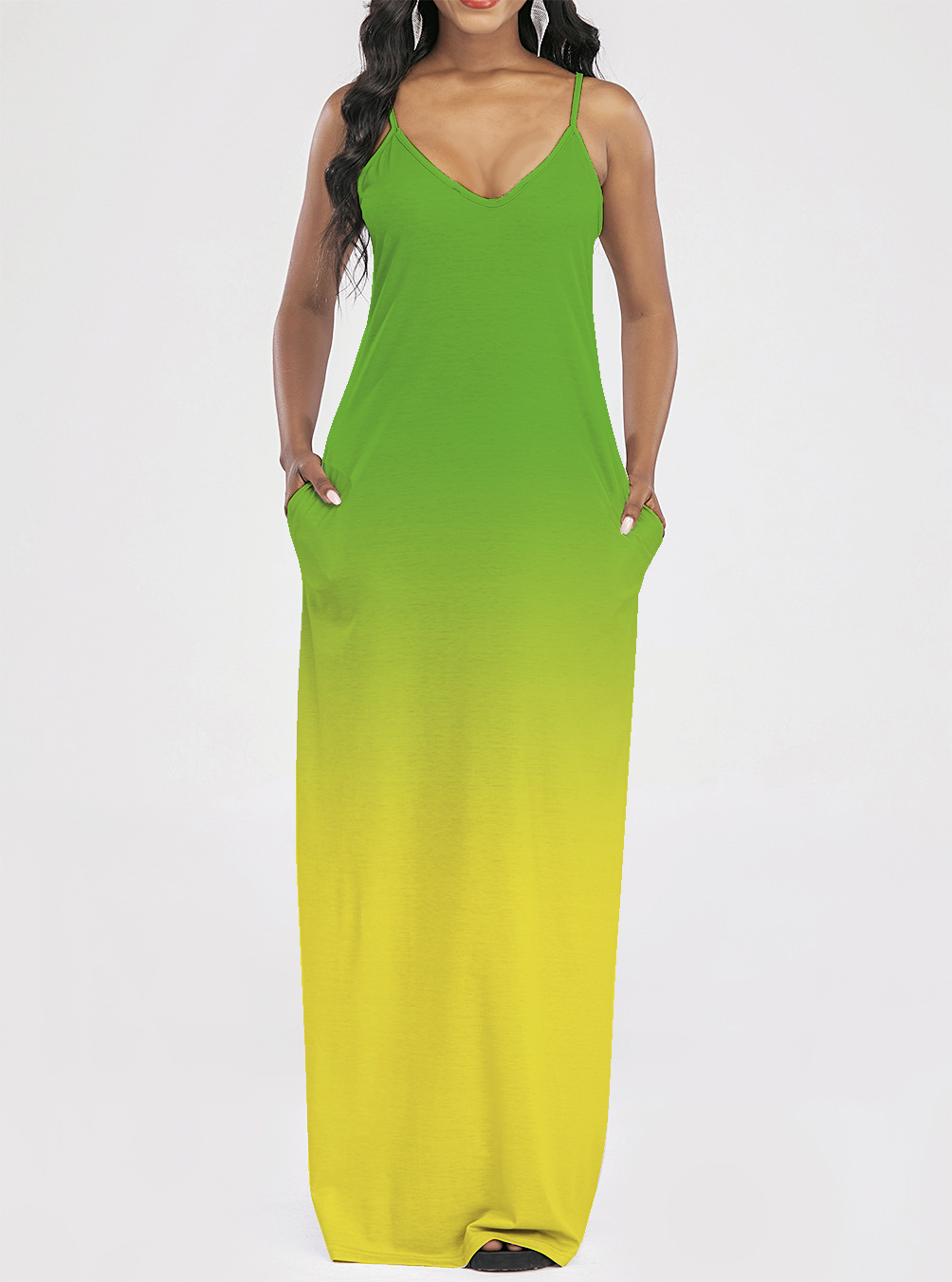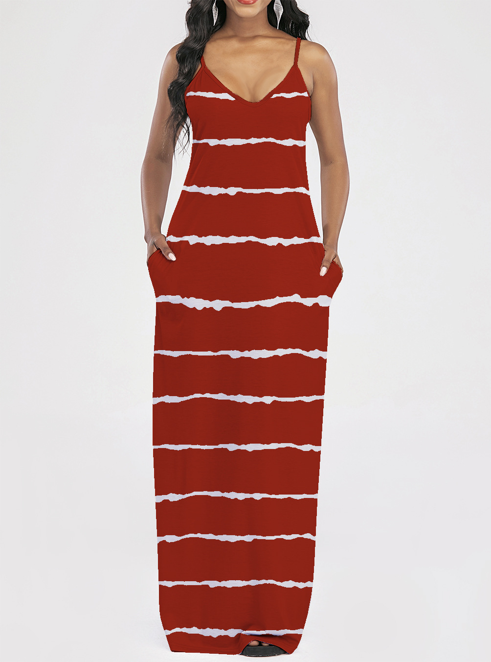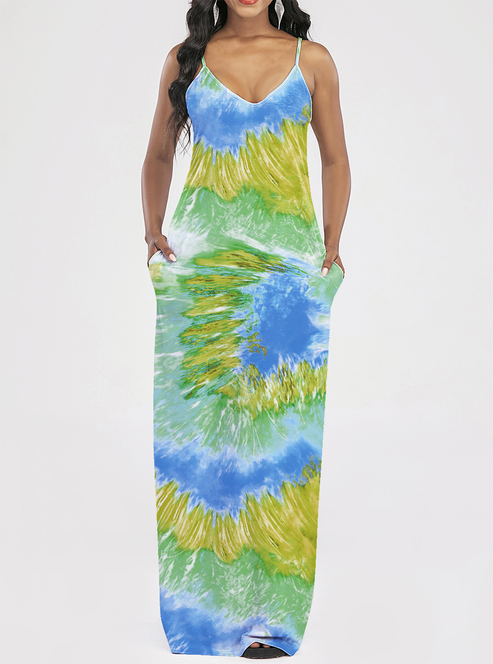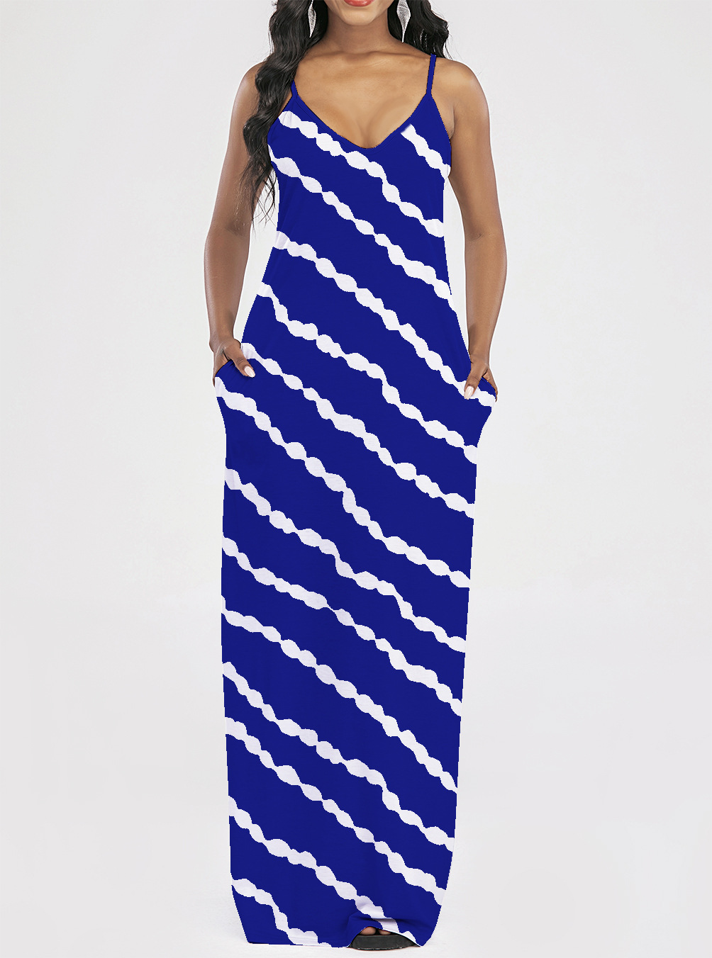 2021 Women Clothing Women Tie-Dye Gradient Slanted Stripe Printed V-neck Strap Dress