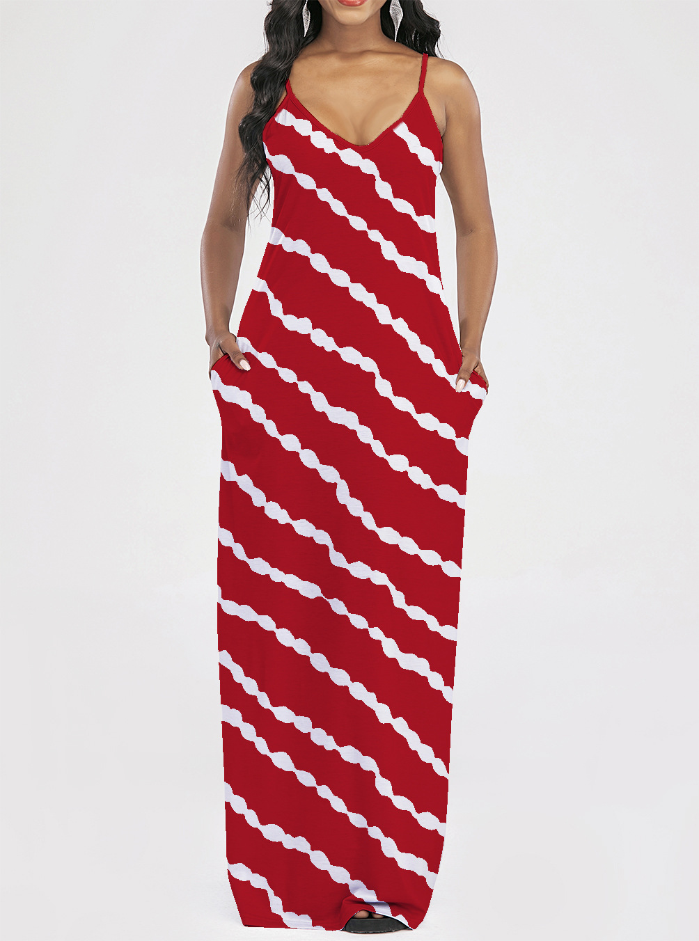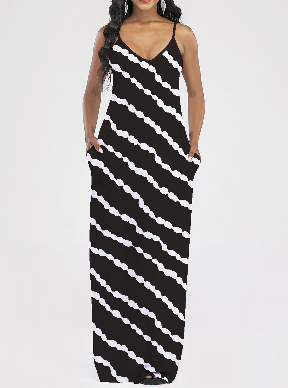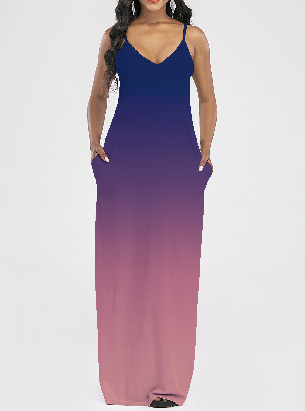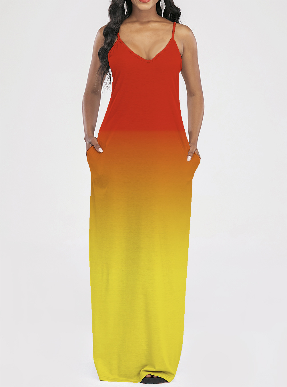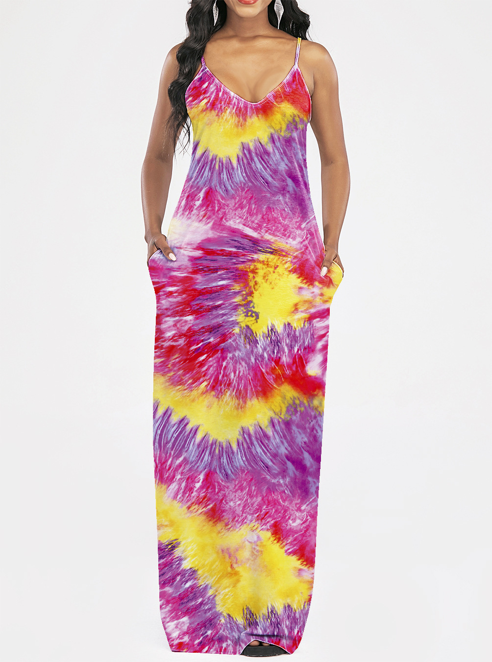 2021 Women Clothing Women Tie-Dye Gradient Slanted Stripe Printed V-neck Strap Dress