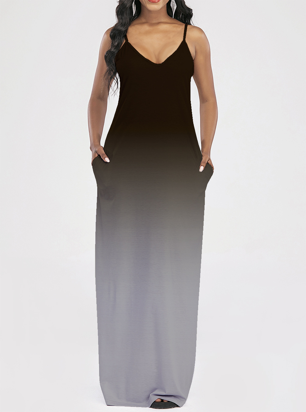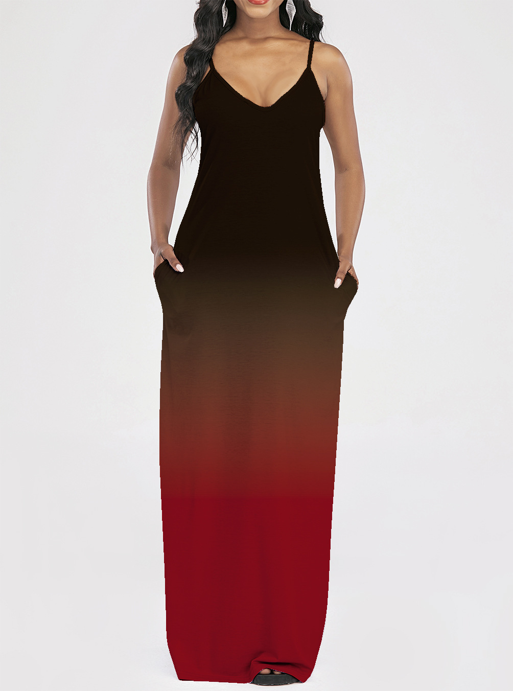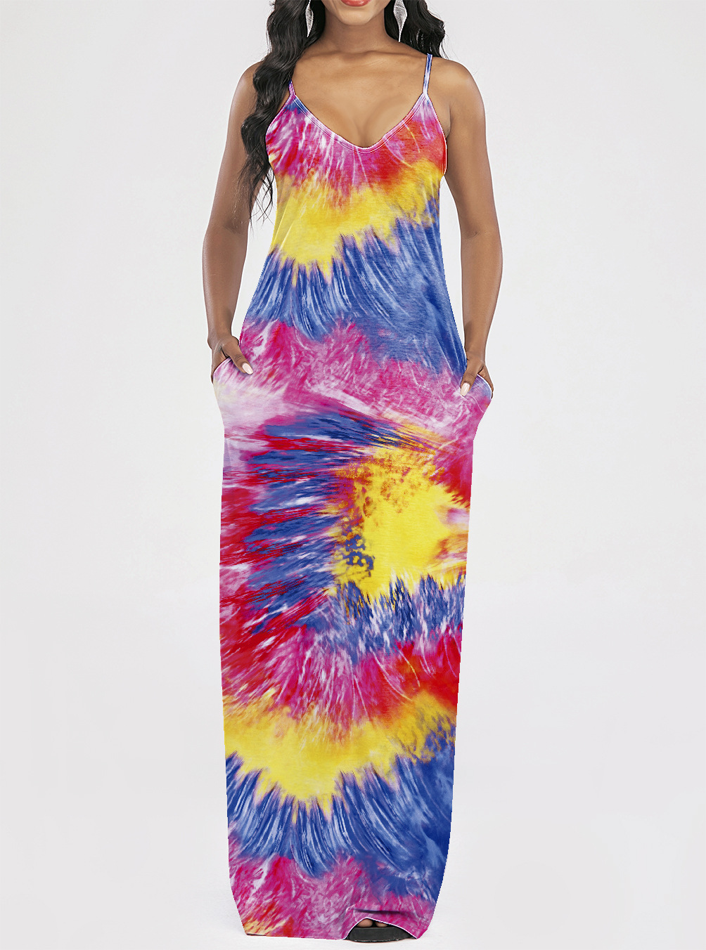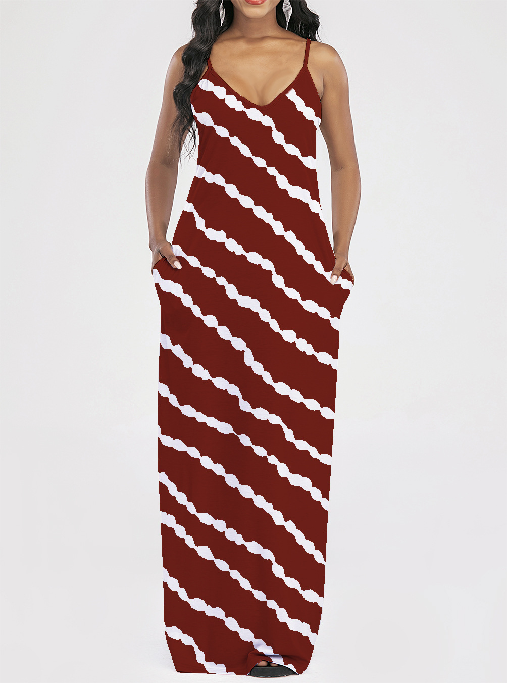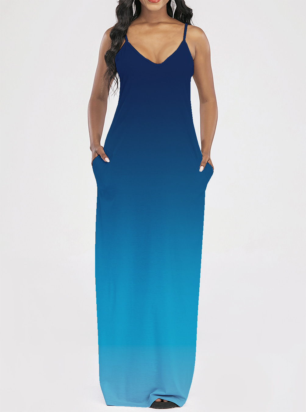 2021 Women Clothing Women Tie-Dye Gradient Slanted Stripe Printed V-neck Strap Dress