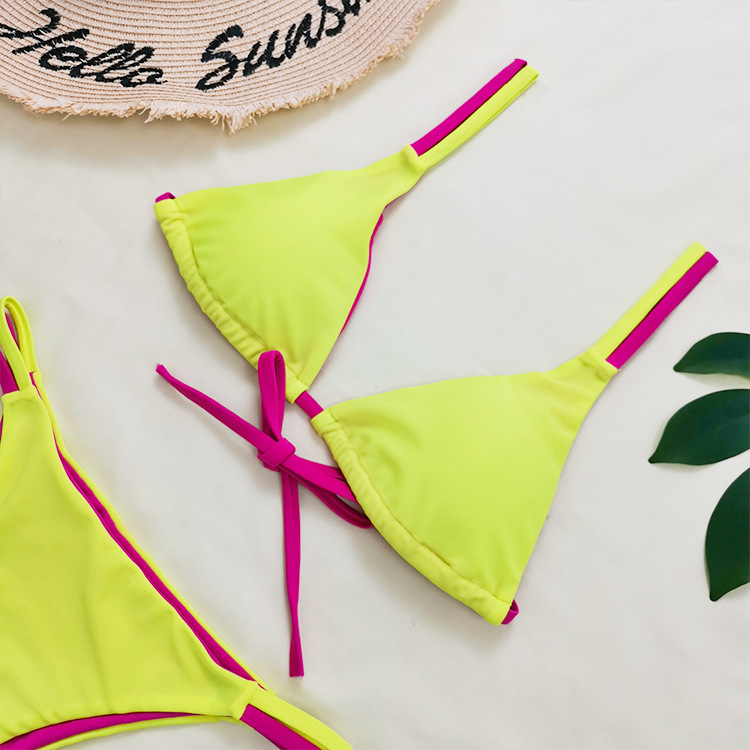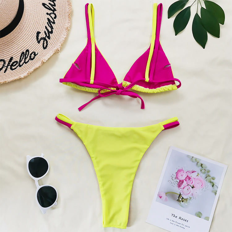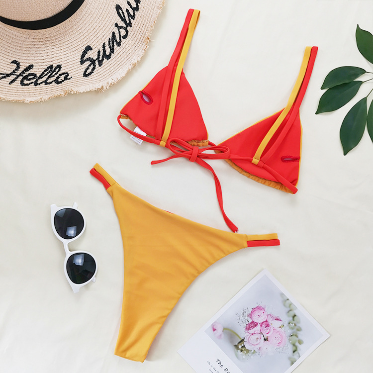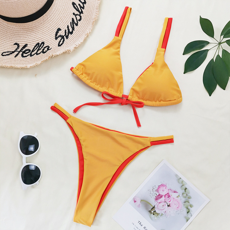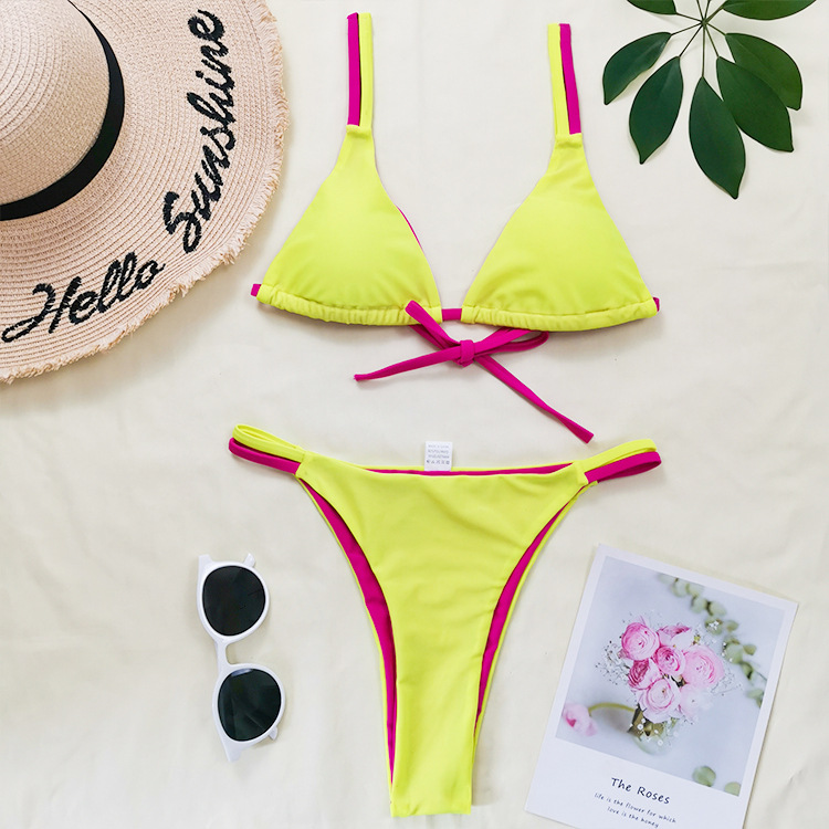 21 New Double-Sided Fabric Contrast Color Drawstring Lace-up Sexy Bikini