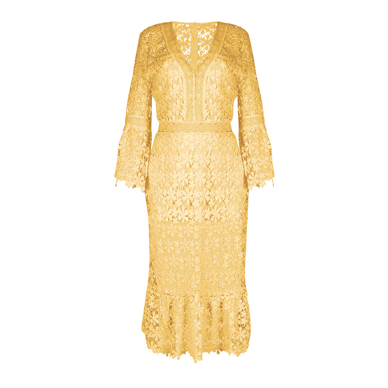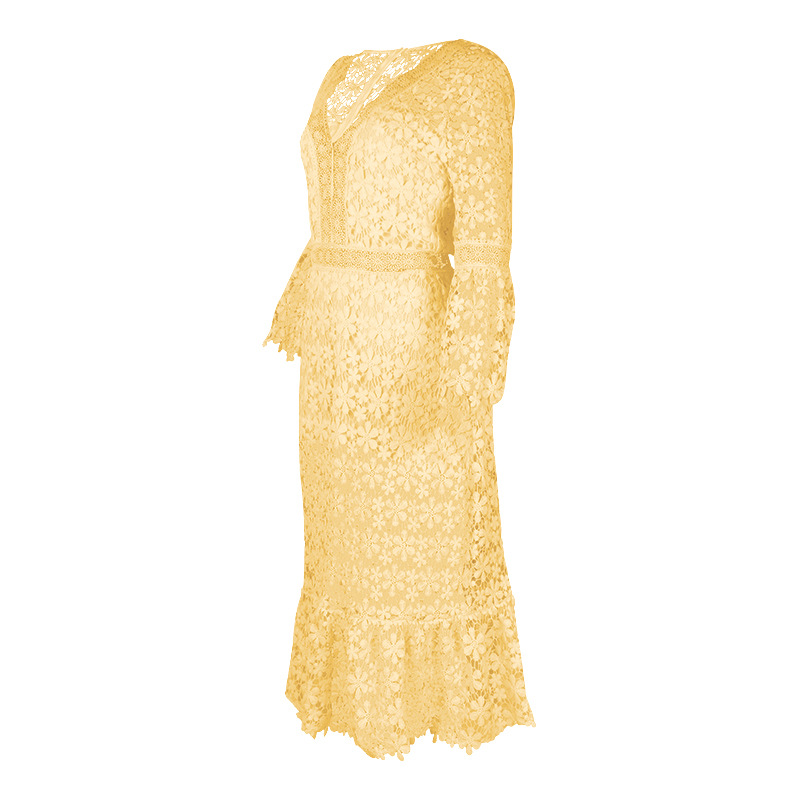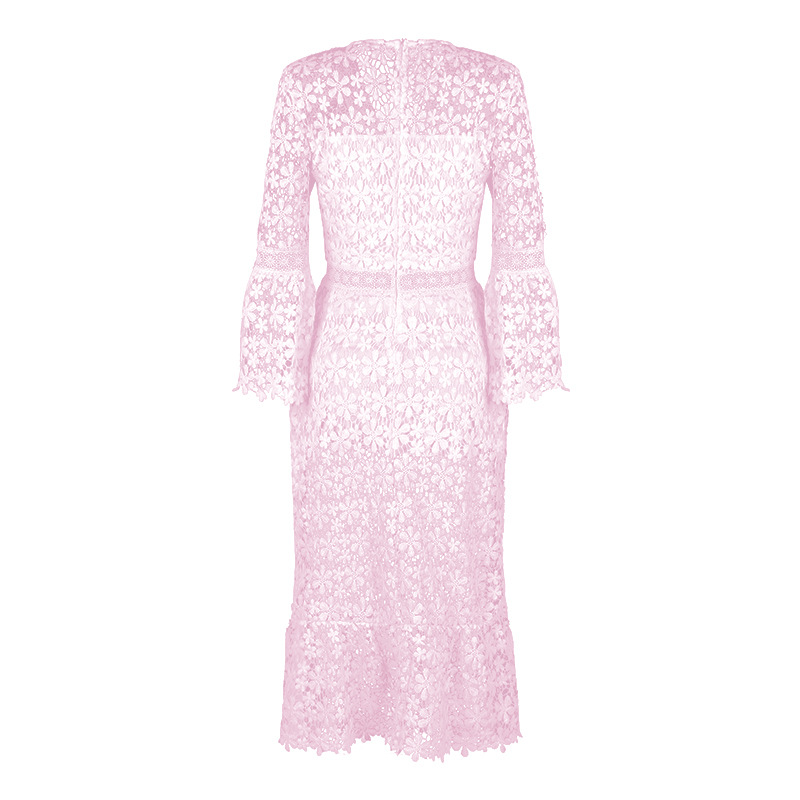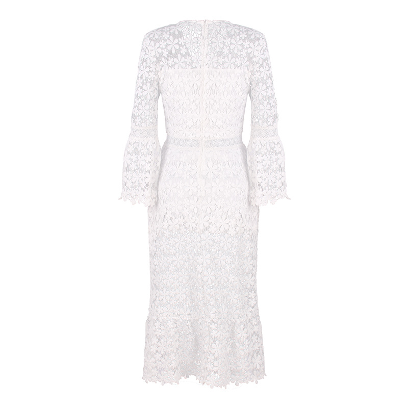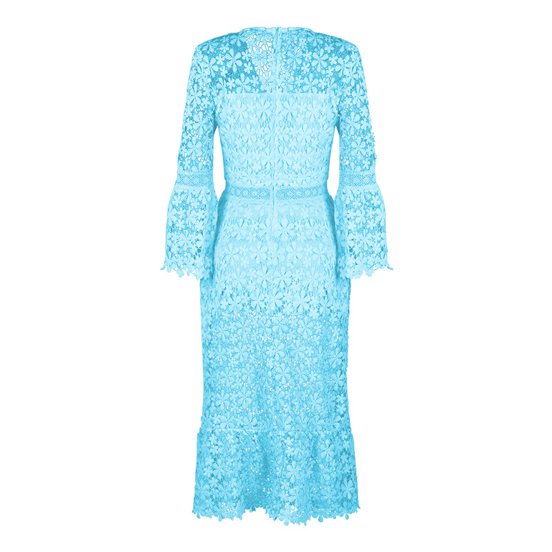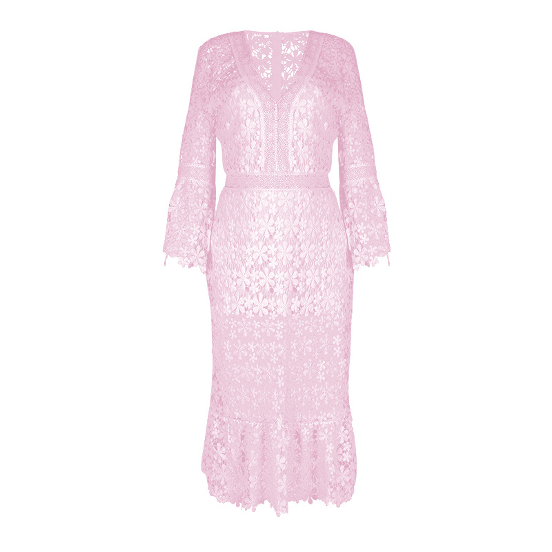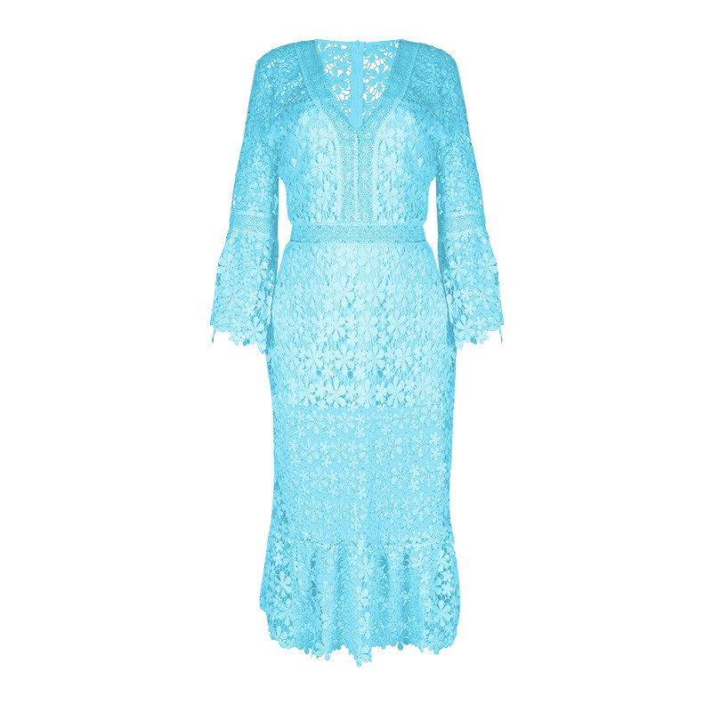 Autumn New Popular Sexy See-through Lace Long Sleeve V-neck Swing Long Dress Women