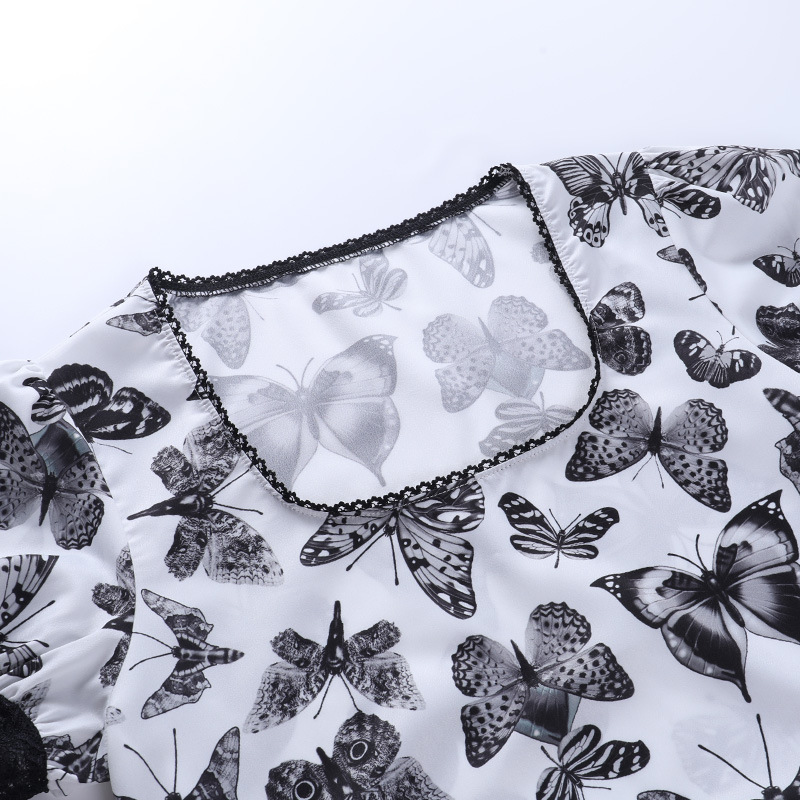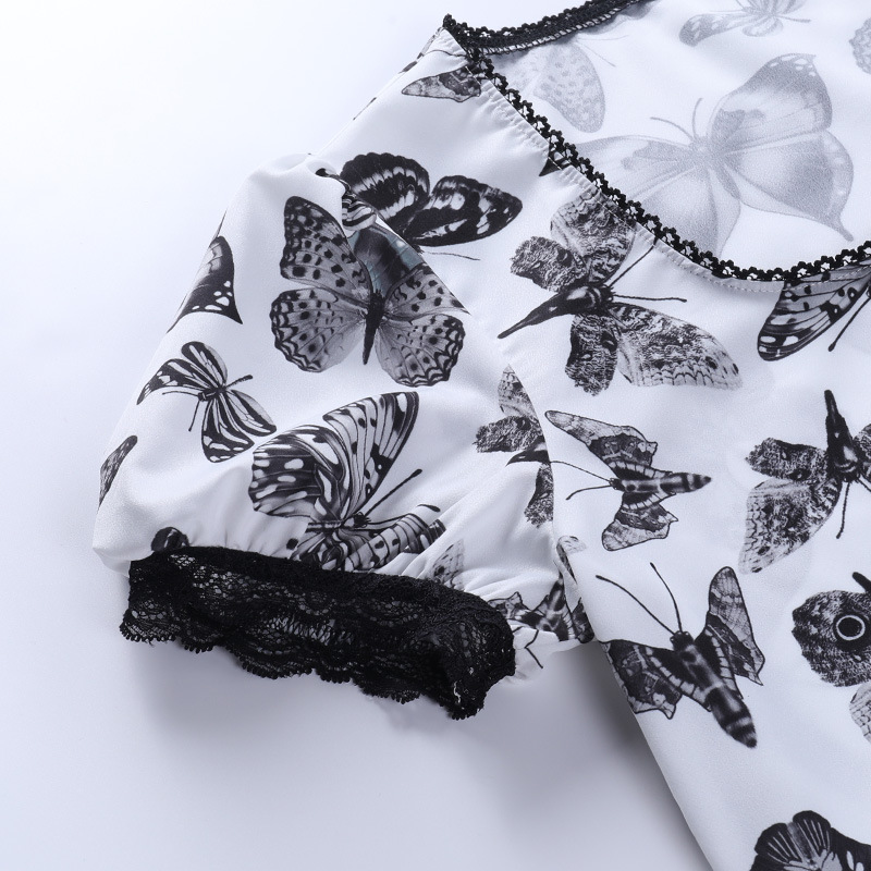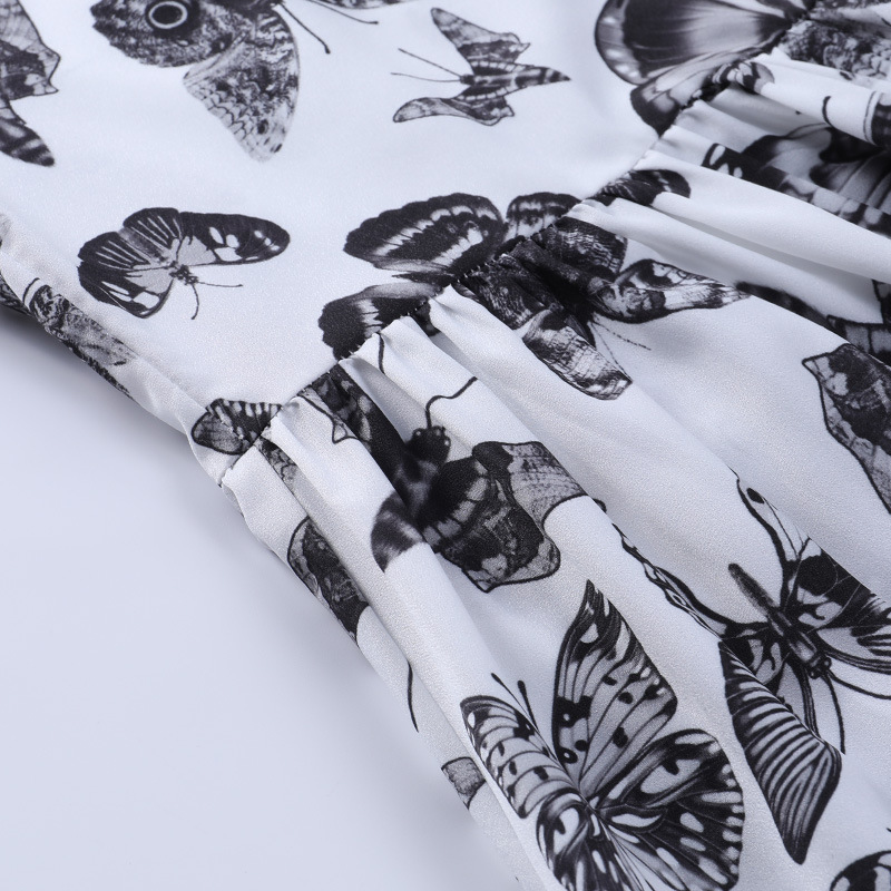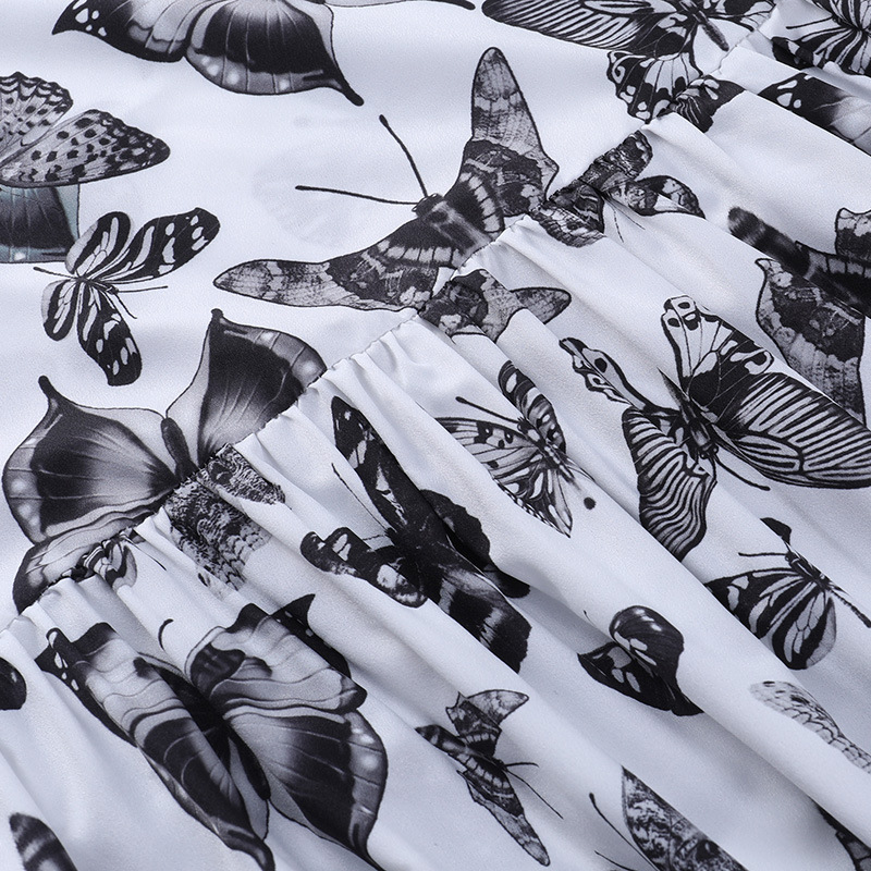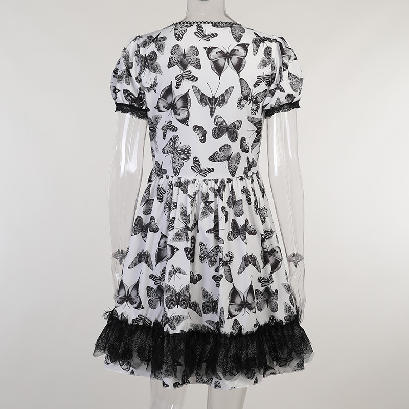 Dark Butterfly a White Swing Chest Puff Short Sleeve Dress 2021 Summer New Women