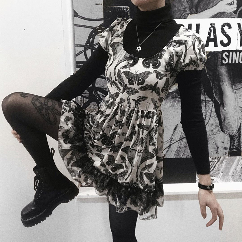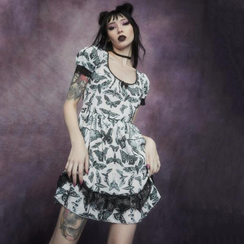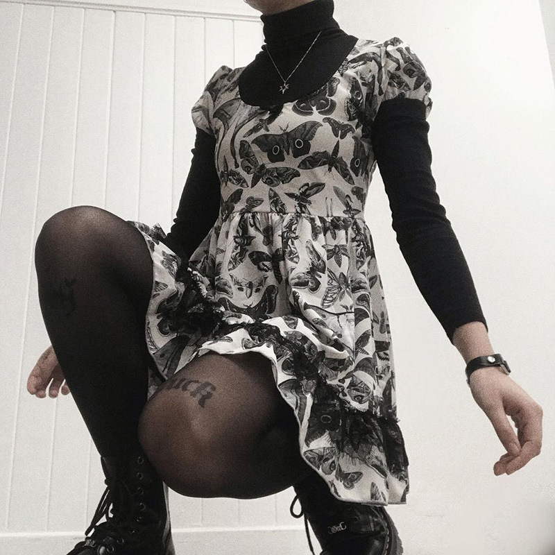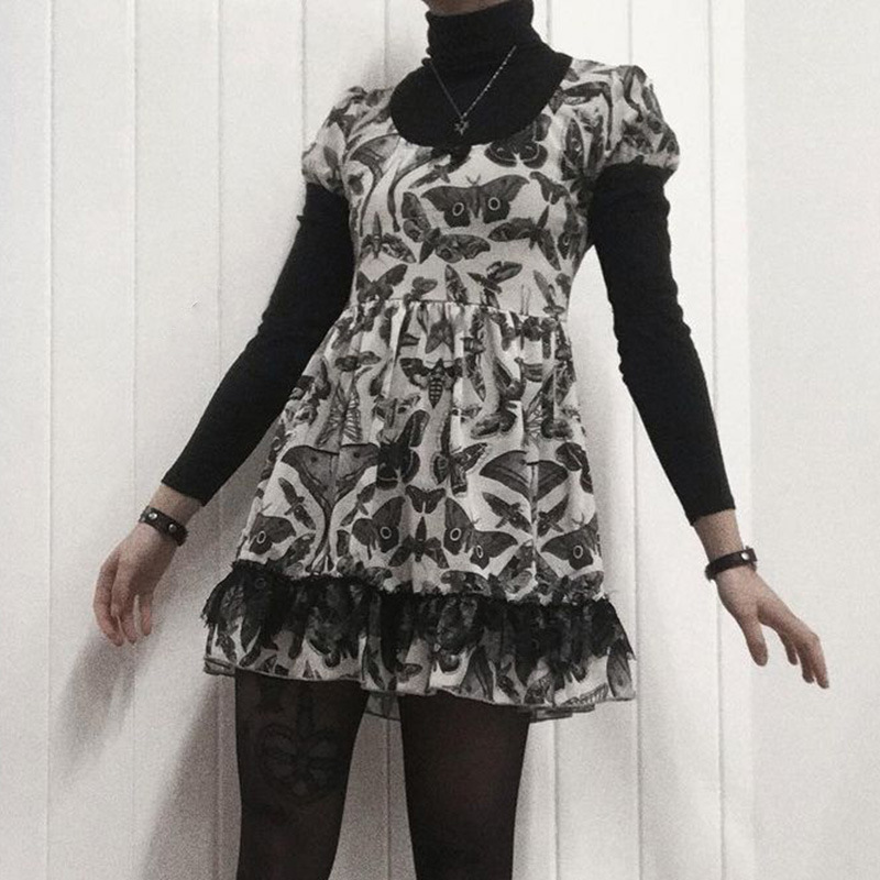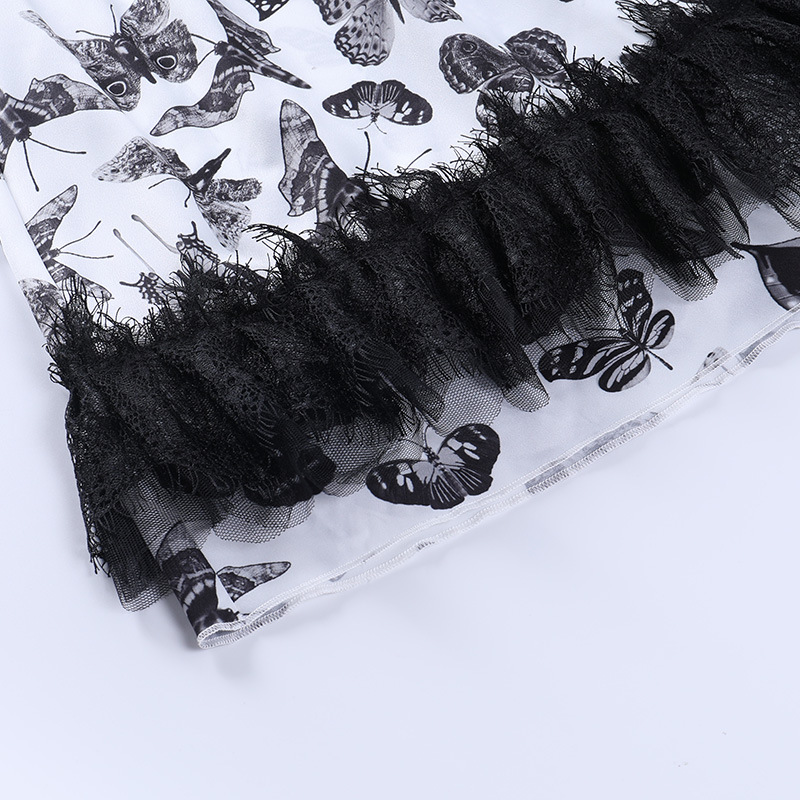 Dark Butterfly a White Swing Chest Puff Short Sleeve Dress 2021 Summer New Women