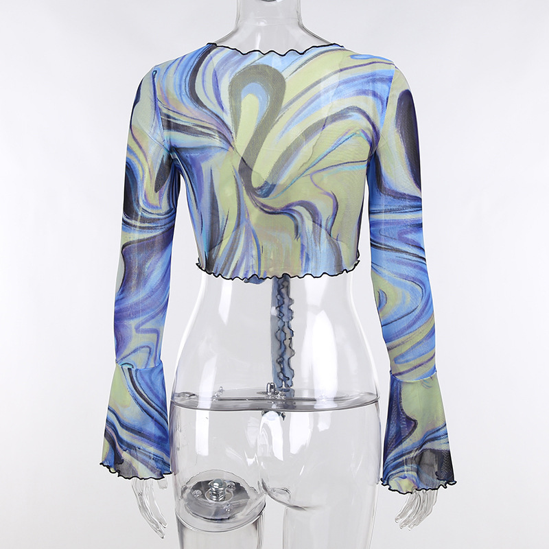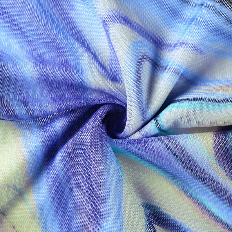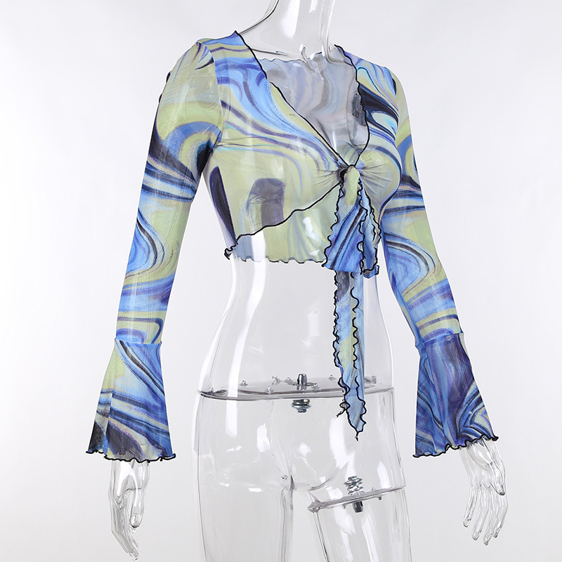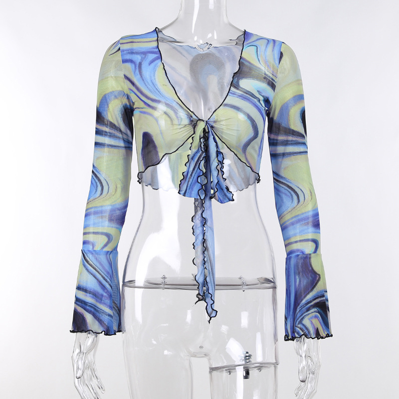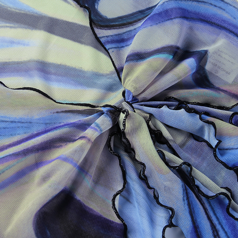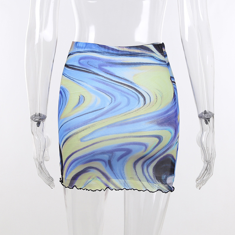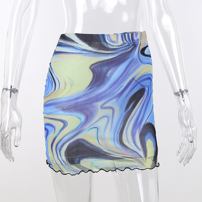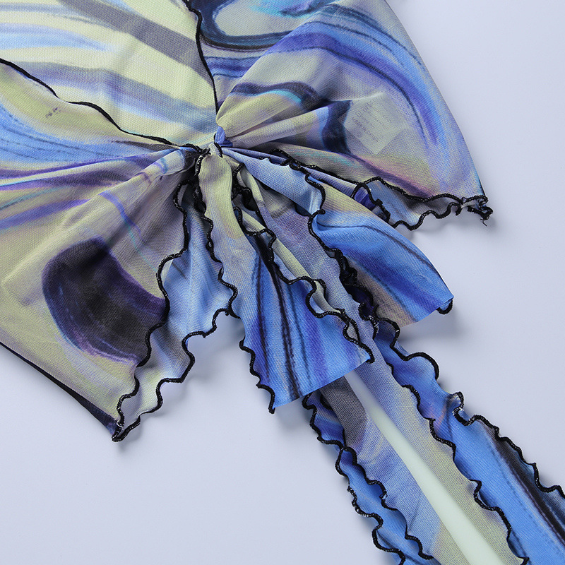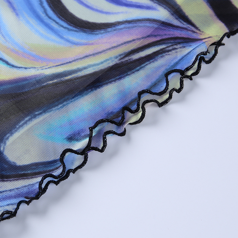 Fashion Casual Women Clothing New Color Pattern Printed Mesh Lace up Slim Fit Show Chest Skirt Suit