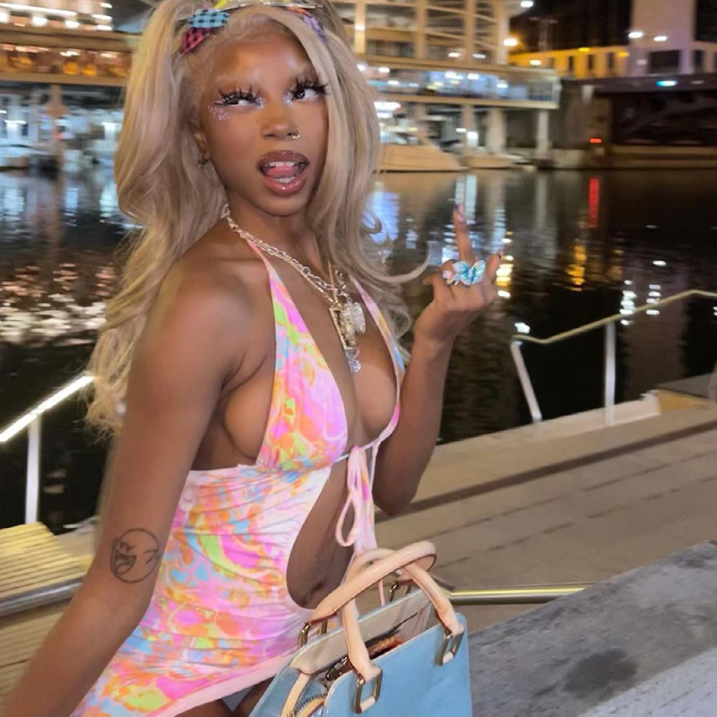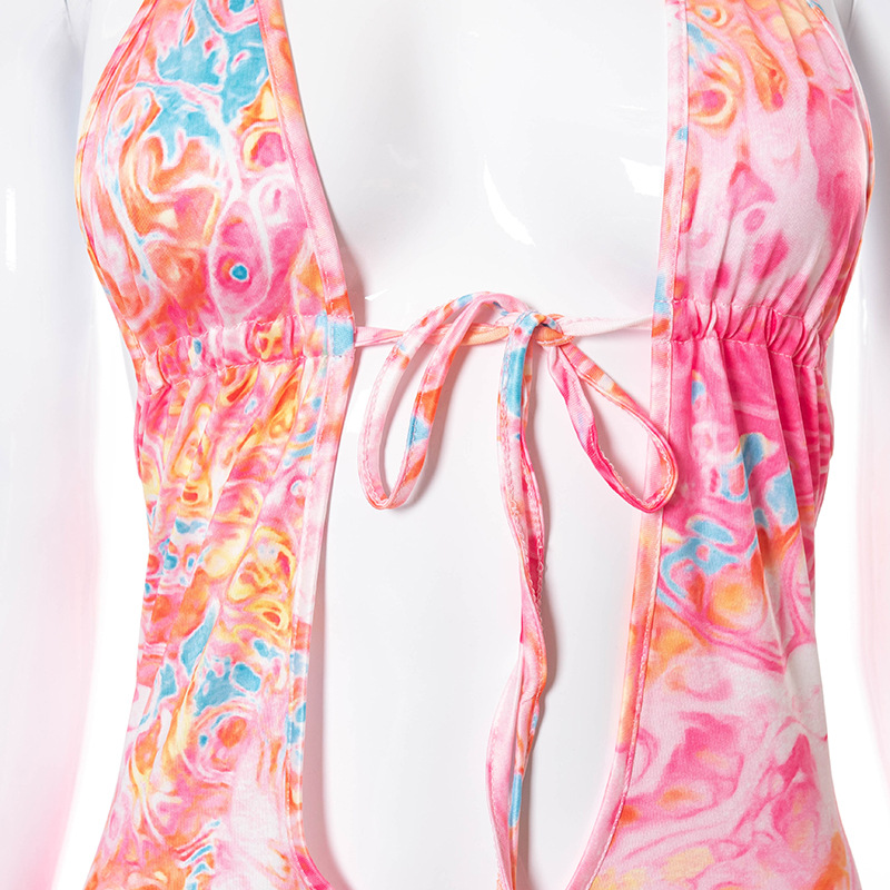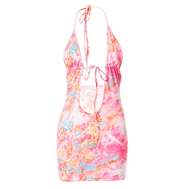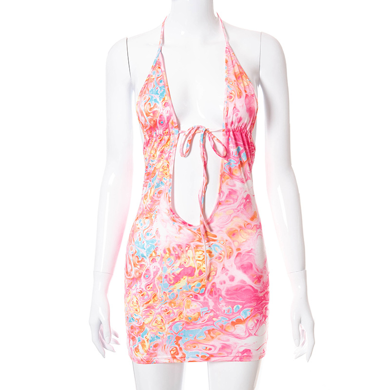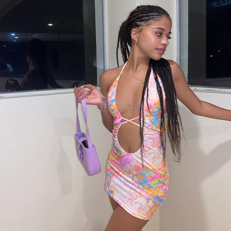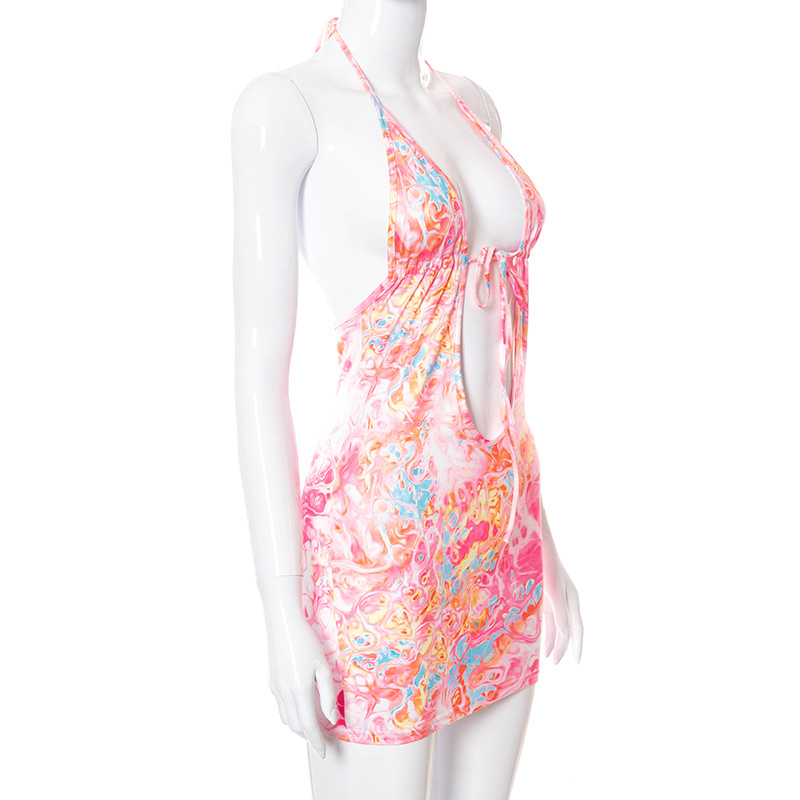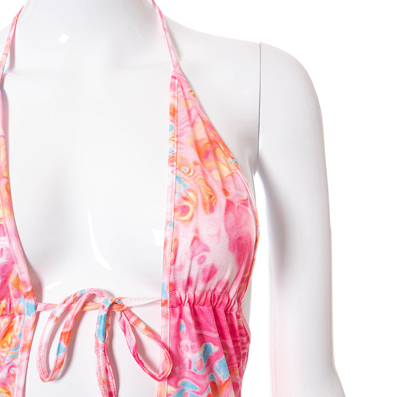 Fashion Women Wear Summer New Sexy Printed Halter Lace-up Lace-up Backless Dress