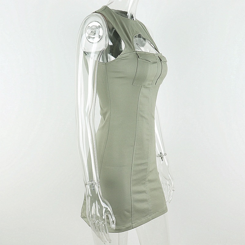 Hot 2021 Summer Women Clothing New Hollow Pocket Stitching Vest Sheath Dress
