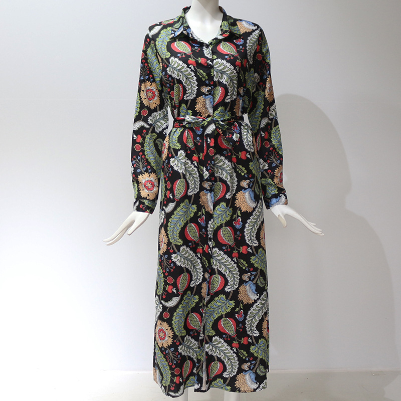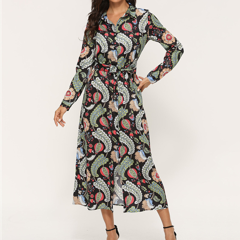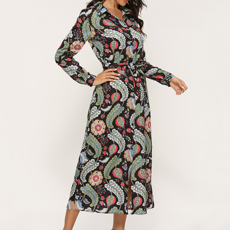 New Autumn Fashion Casual Printing Chiffon Long-Sleeved Shirt Chiffon Dress