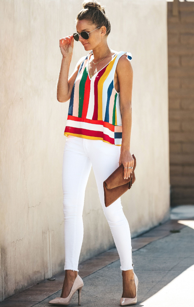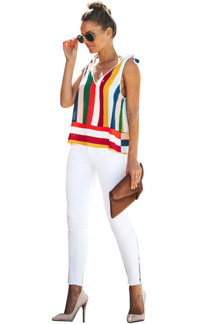 Sexy Sling Women Clothing Top V-neck Striped Loose Vest Top