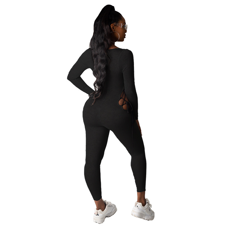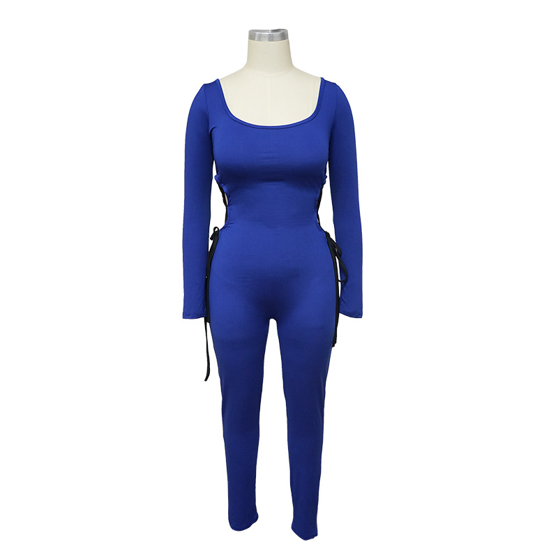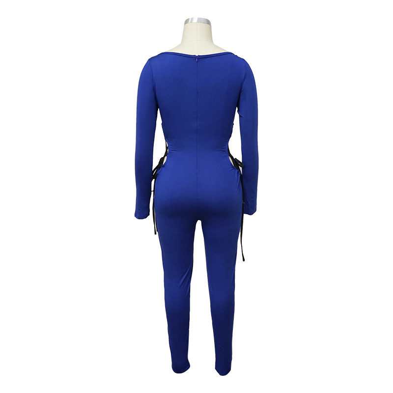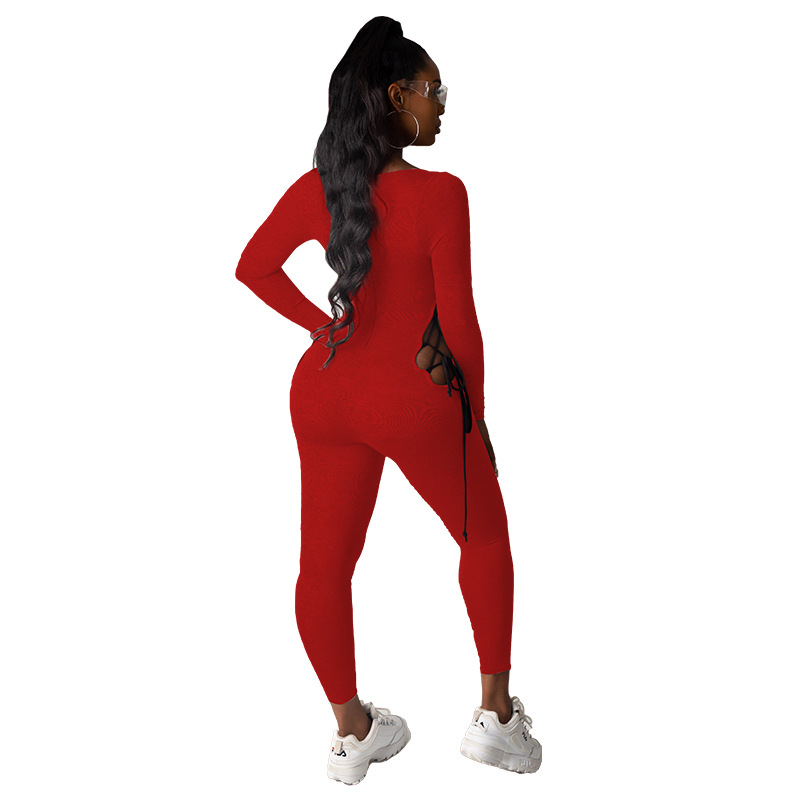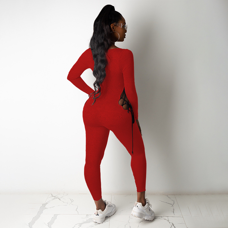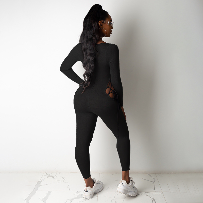 Solid Color Jumpsuit Sexy Lace-up Contrast Color Long Sleeves Tights for Women