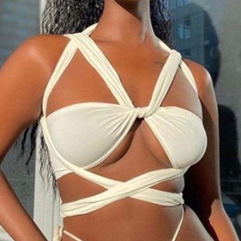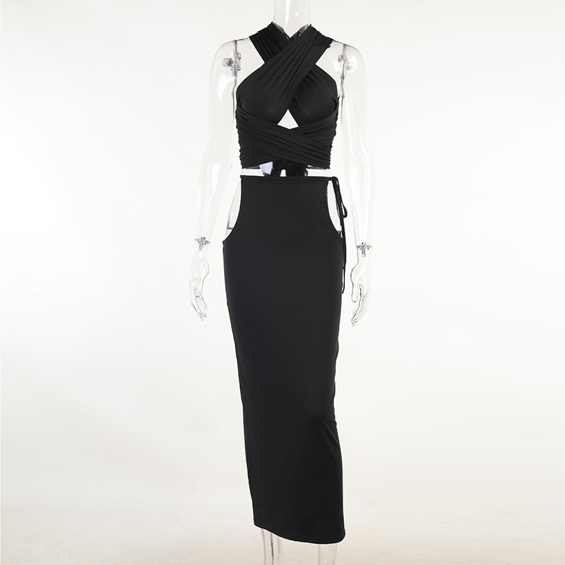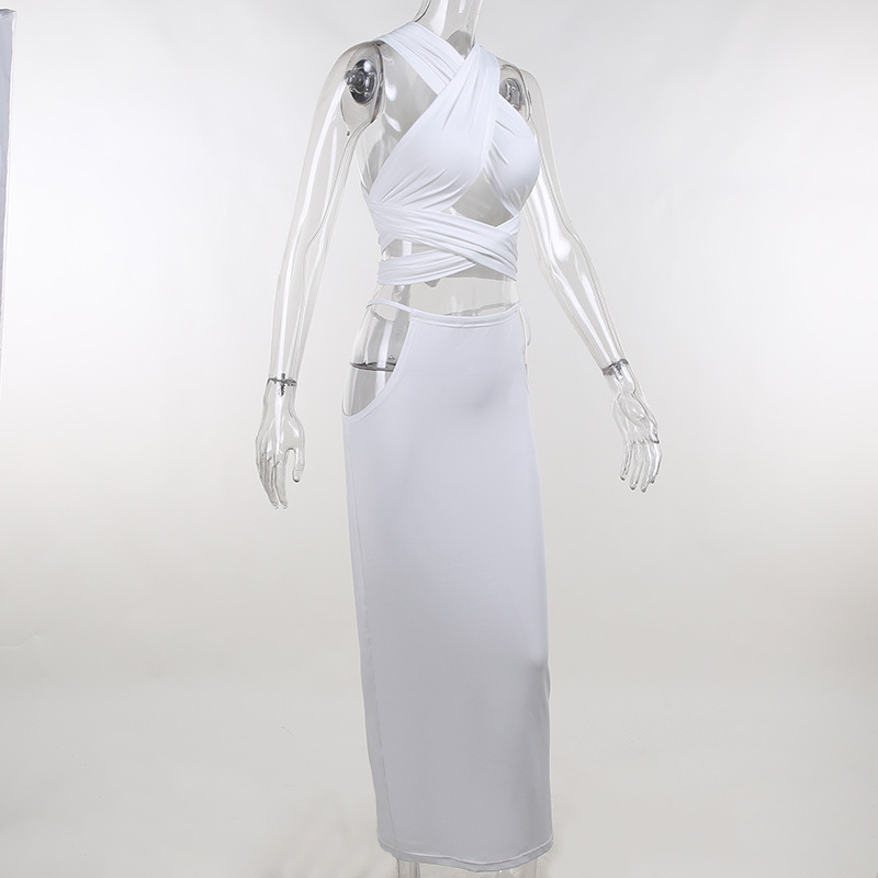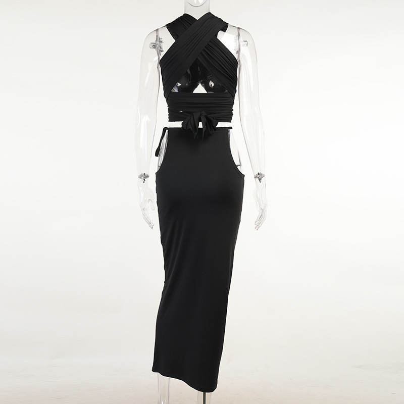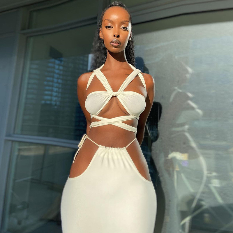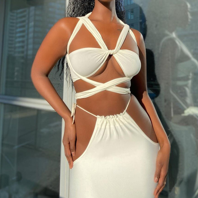 Summer New Sexy Hollow out Strap Suit Style Deep V Navel Sheath Dress for Women