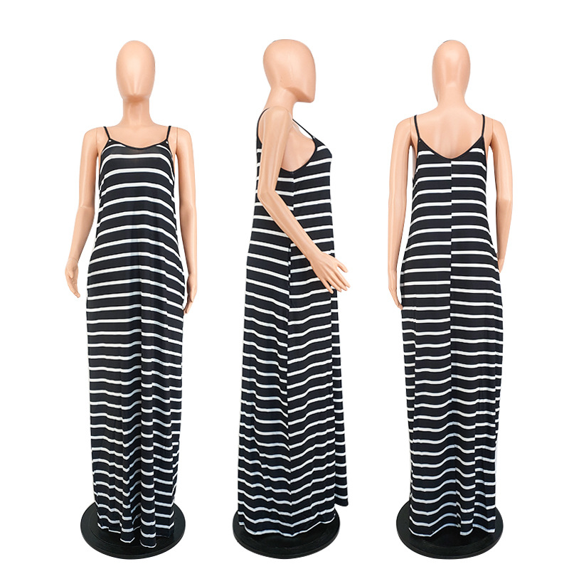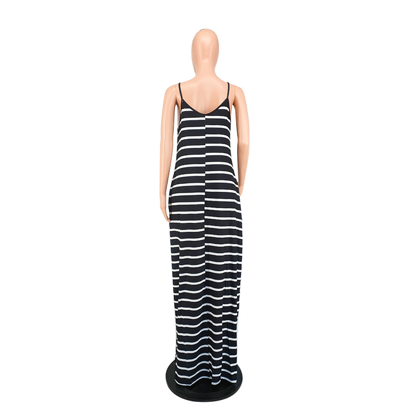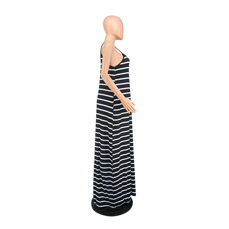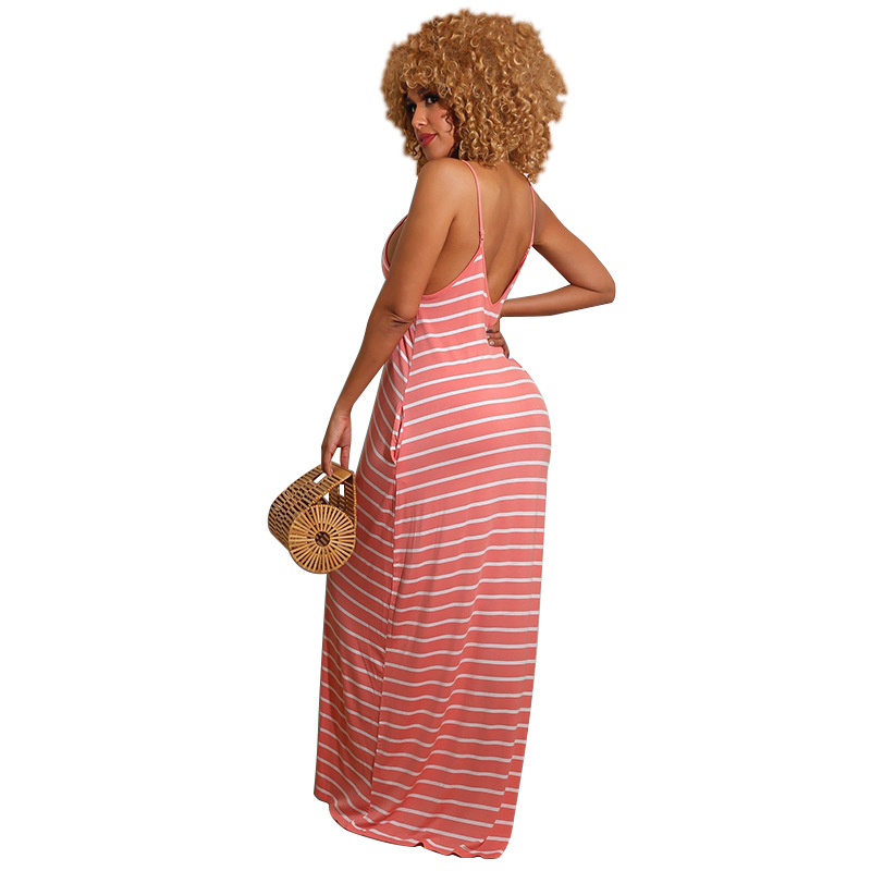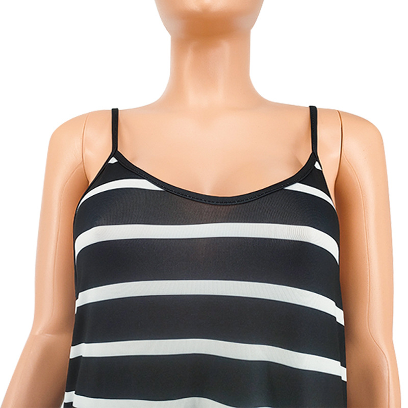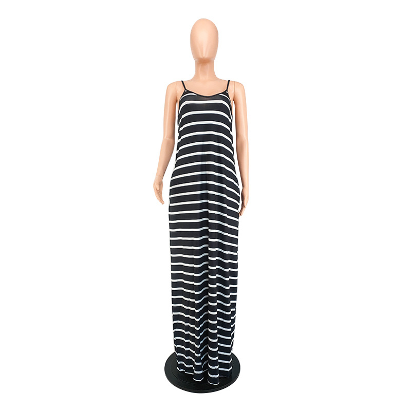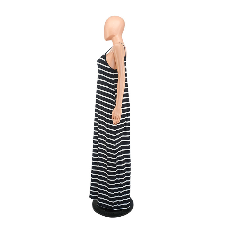 Women Clothing 2021 Summer New Cool Striped Spaghetti Straps Dress