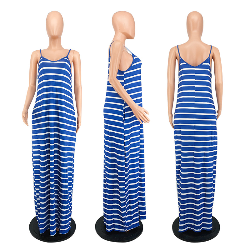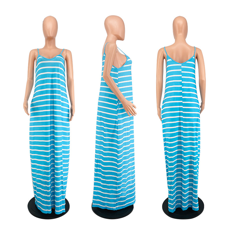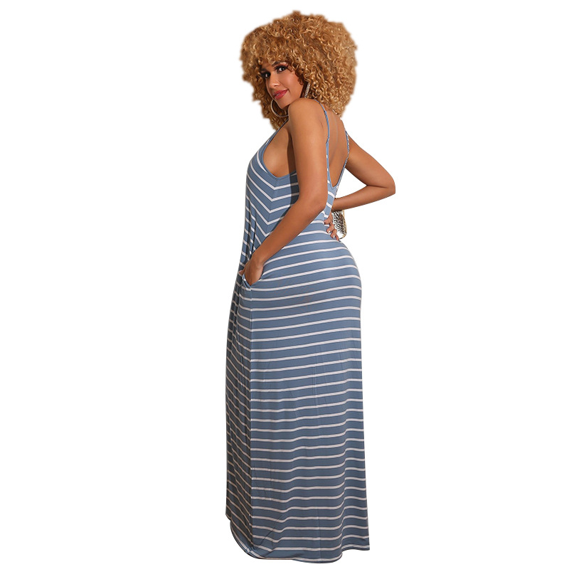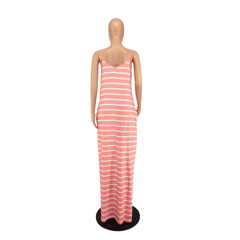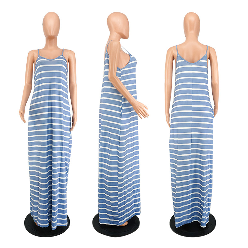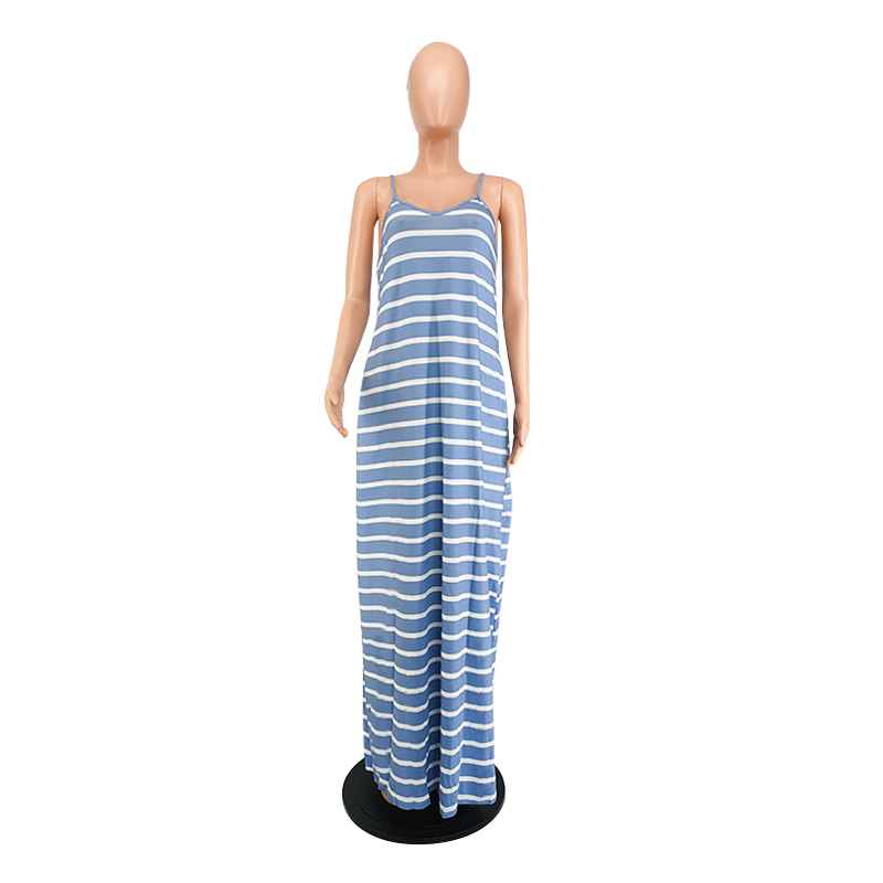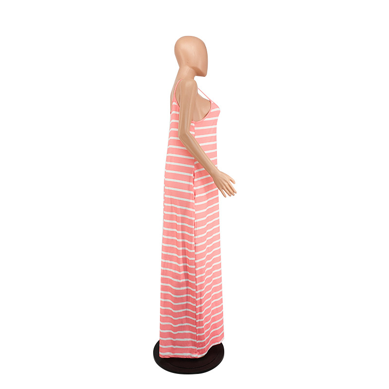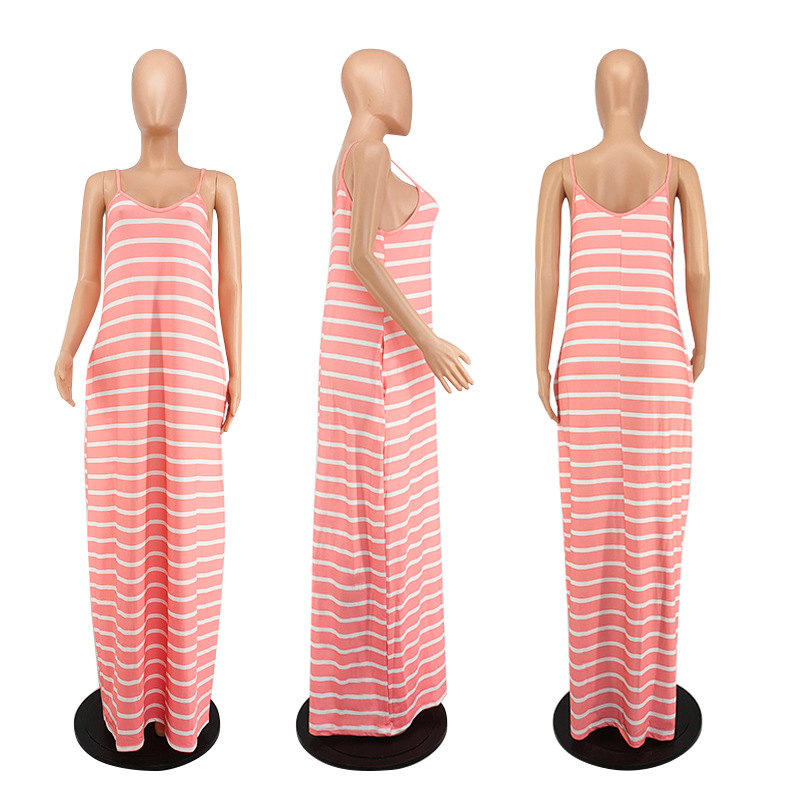 Women Clothing 2021 Summer New Cool Striped Spaghetti Straps Dress