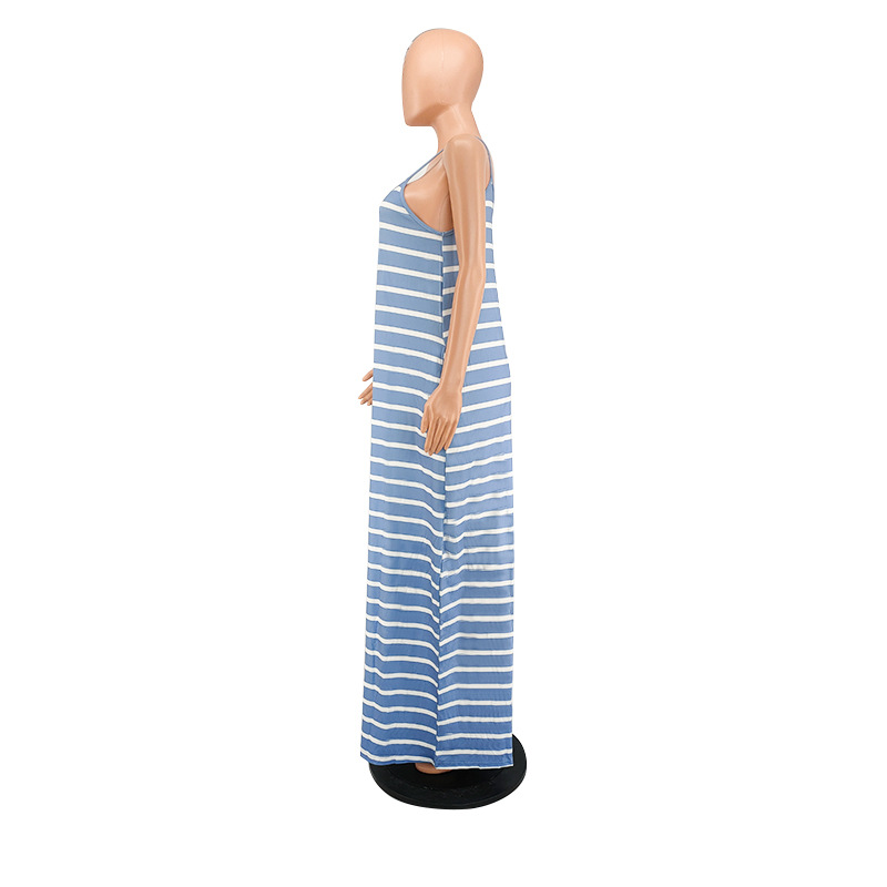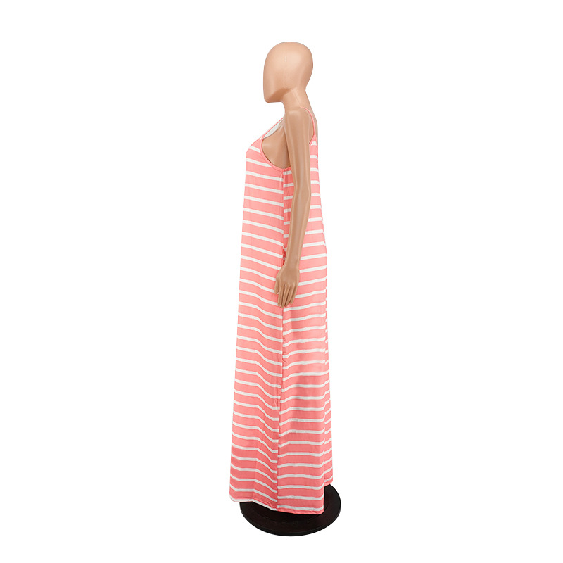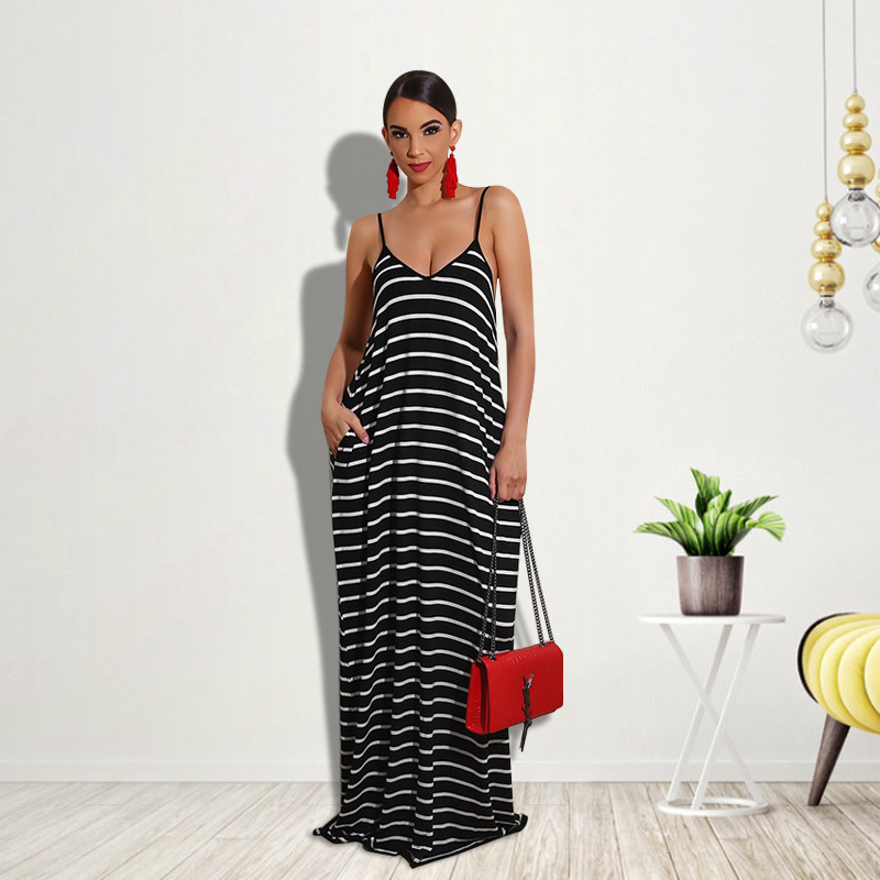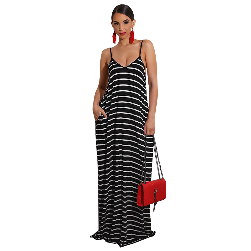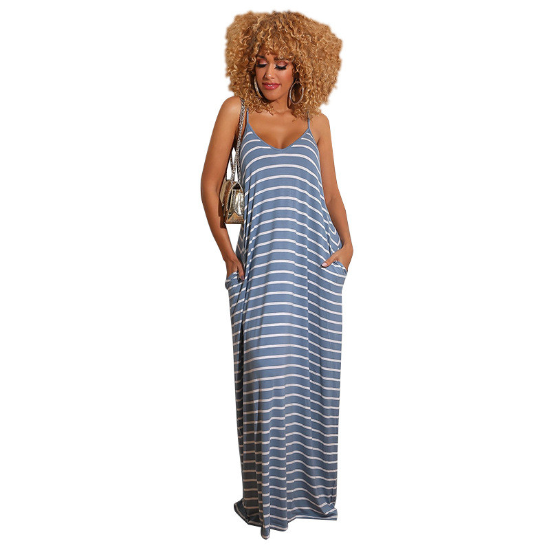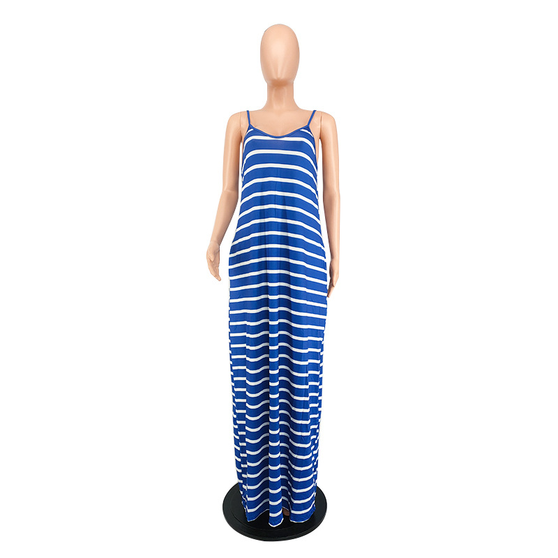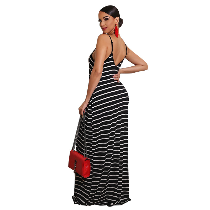 Women Clothing 2021 Summer New Cool Striped Spaghetti Straps Dress