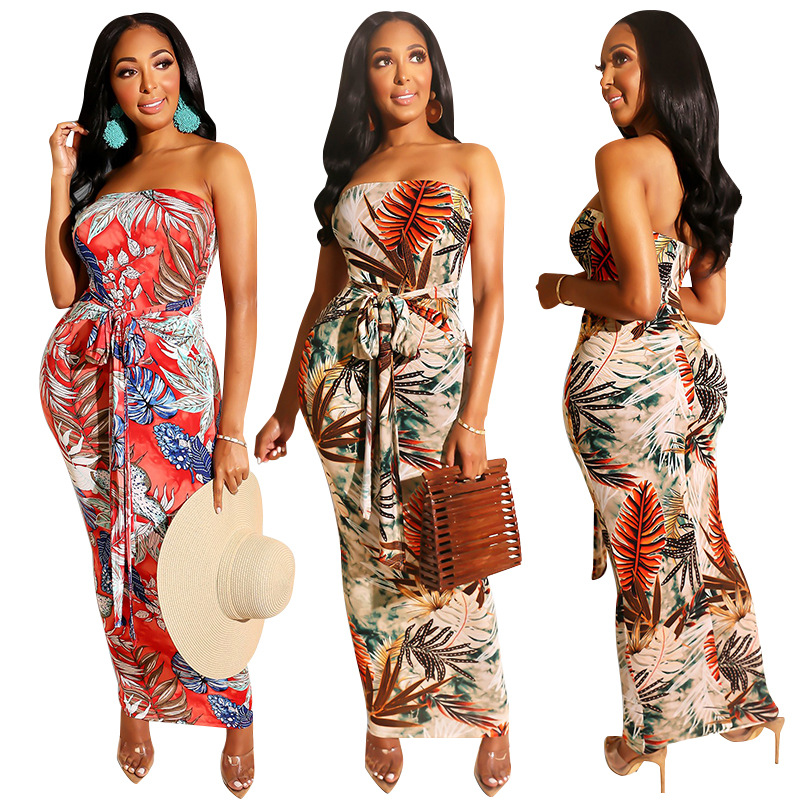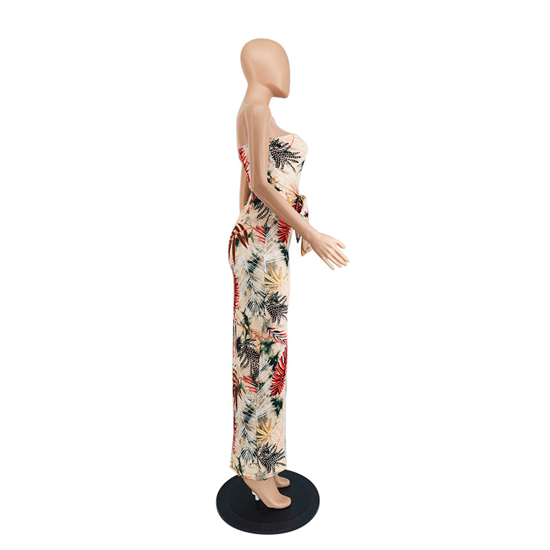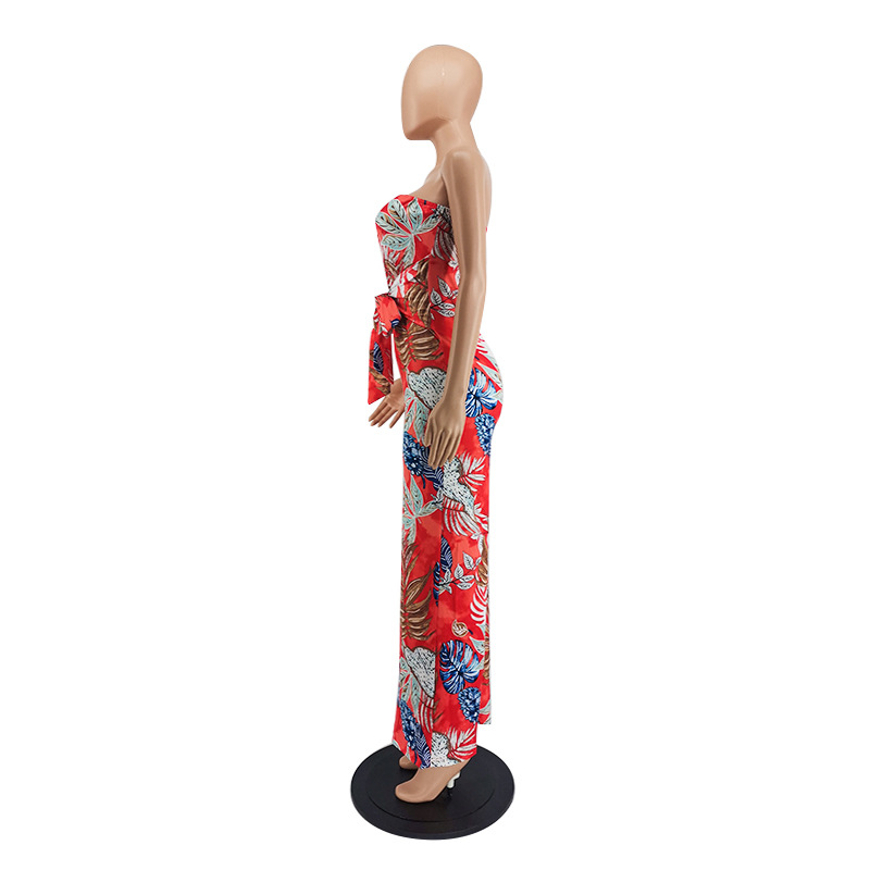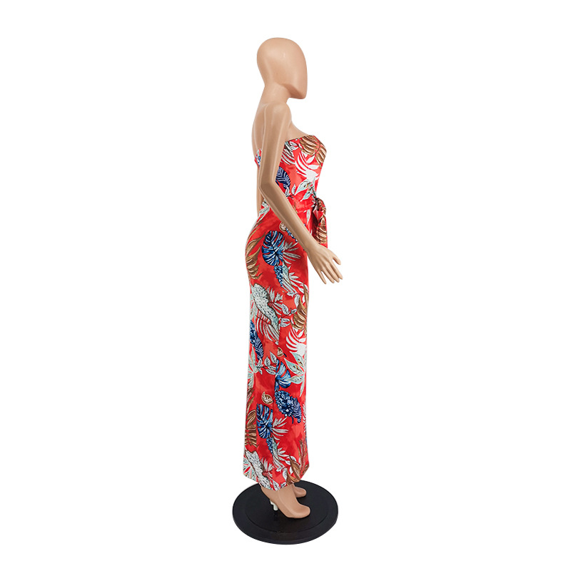 Women Clothing 2021 Summer New Large Flower Cold-Shoulder Elegant Dress